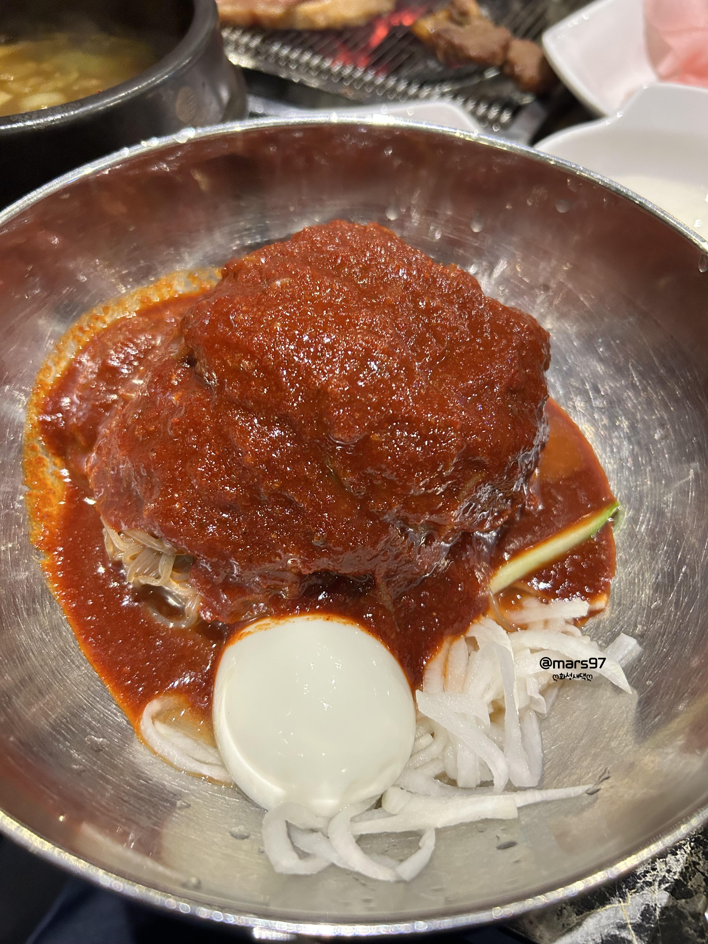 고기의 맛과 비빔냉면의 맛이 특이하긴 하나 금방 물림(호불호 있을 수 있는 맛)