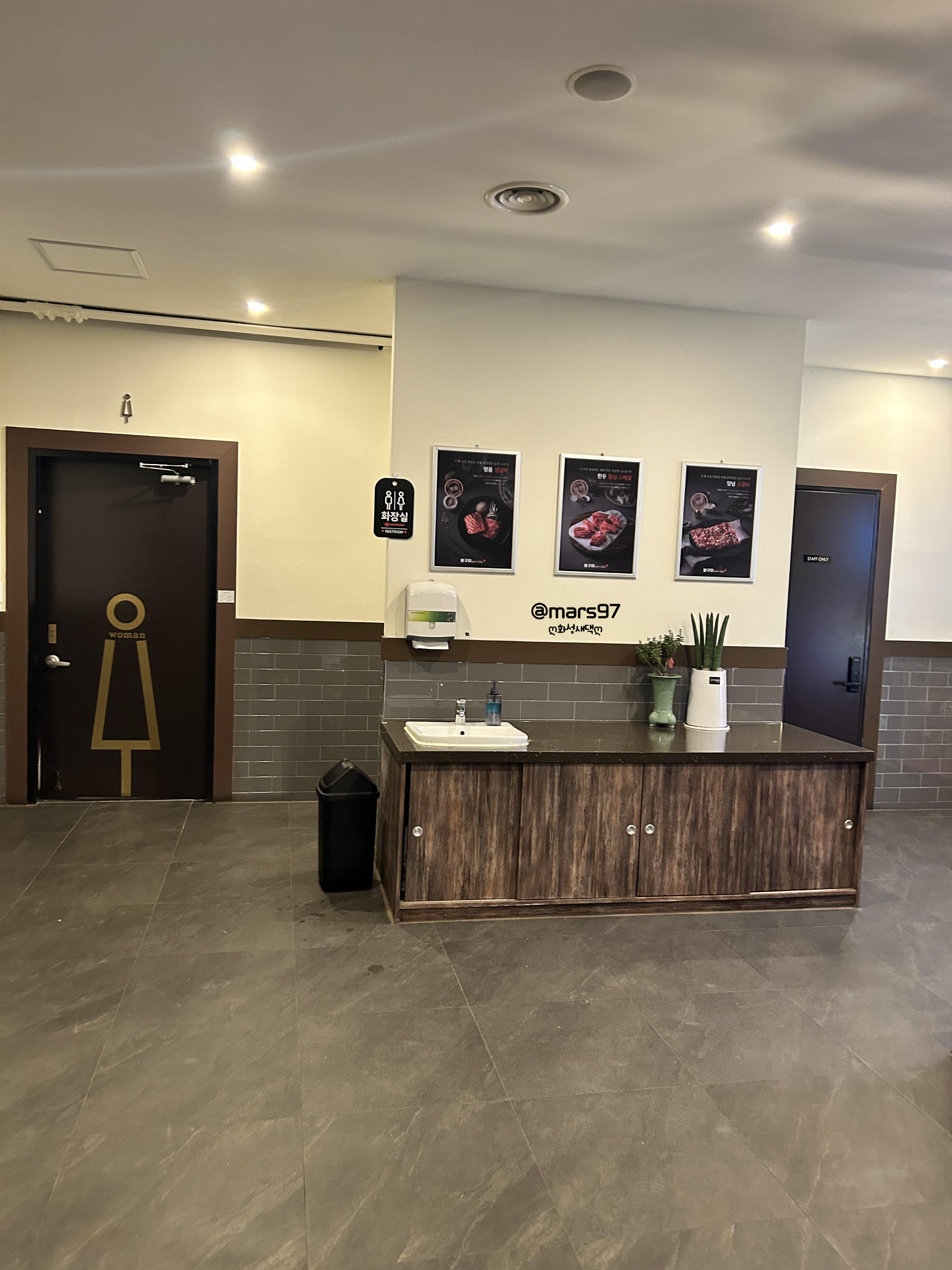 안으로 들어가자마자 손을 씻을 수 있는 세면대가 있어요