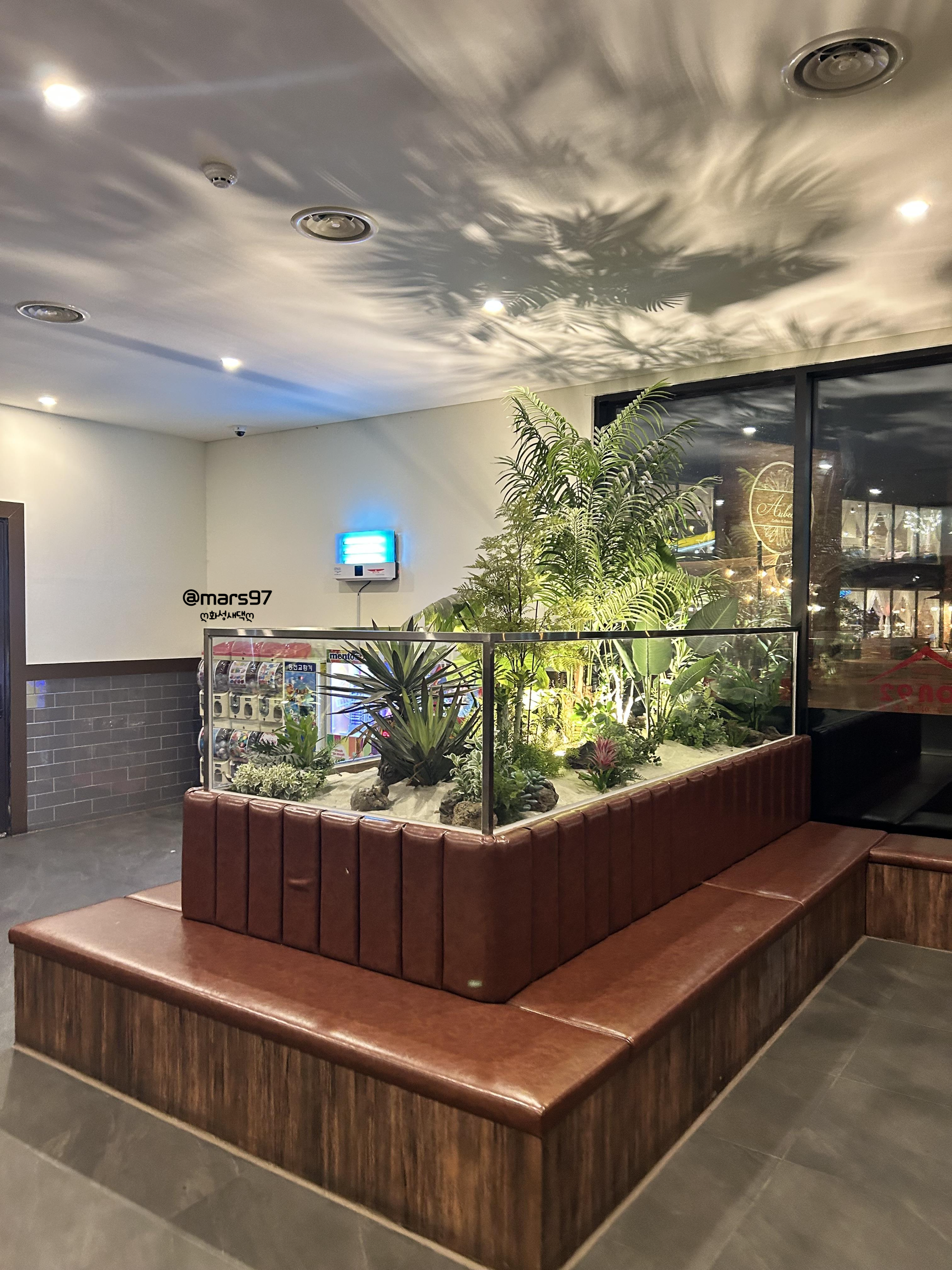 반대편에는 엄청 큰 유리 안에 모래와 화초들로 꾸며져 있어요