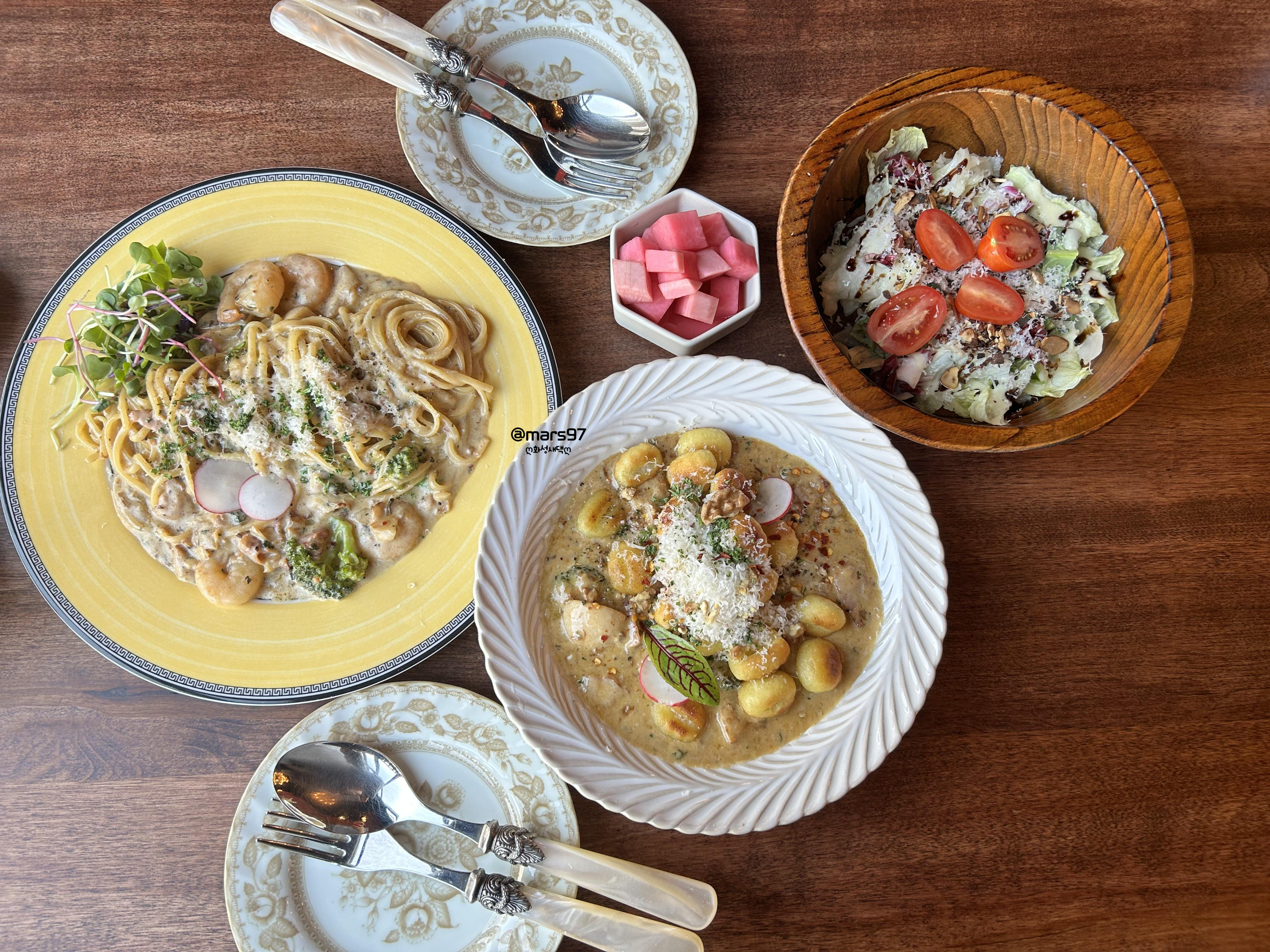 파스타 뇨끼 세트 - 기본 샐러드 + 파스타 1 + 감자 크림 뇨끼 + 에이드 or 블랜딩 티 38,500원