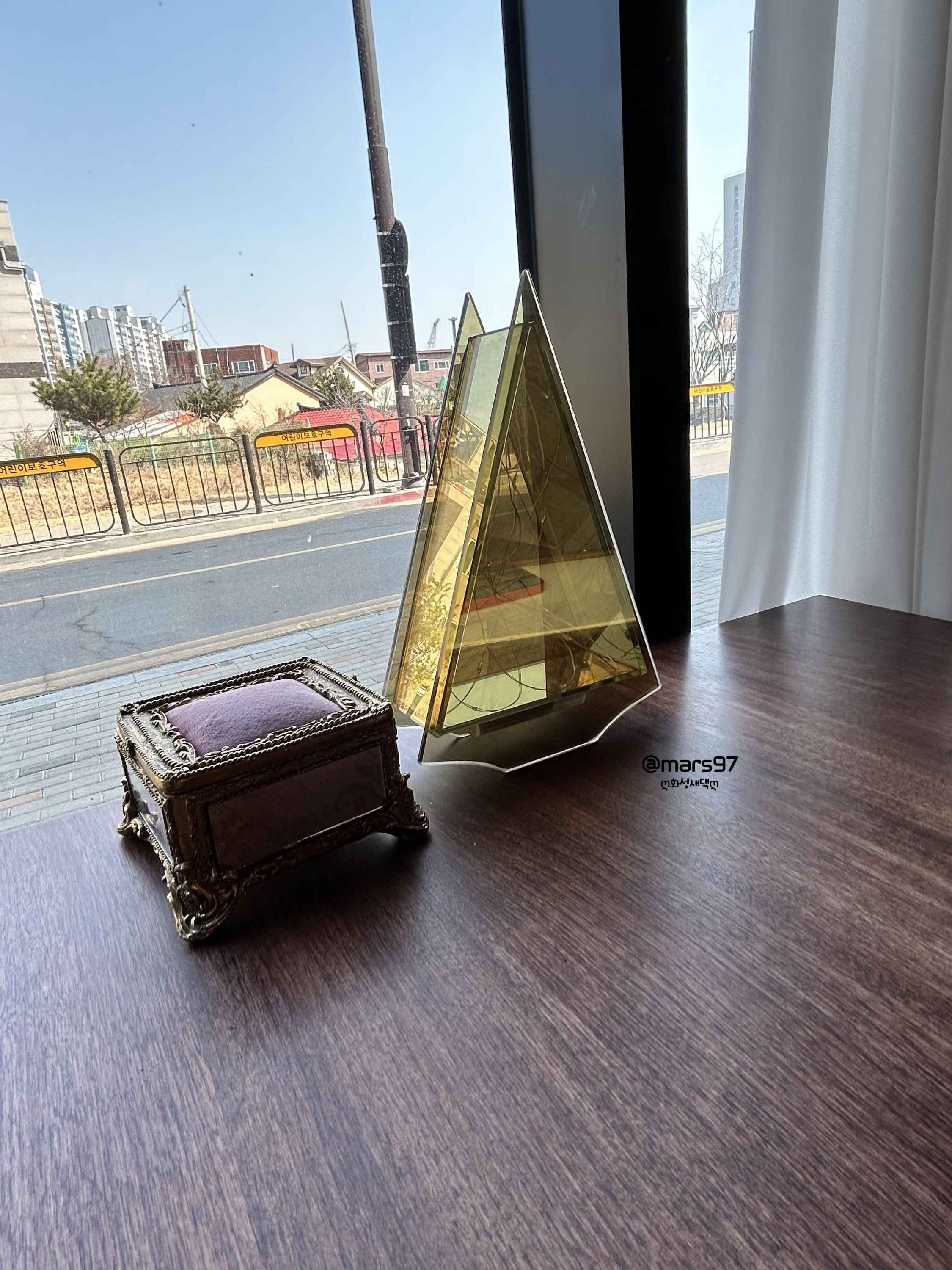 테이블 한쪽에 조명과 작은 보석함이 있길래 열어 봤어요