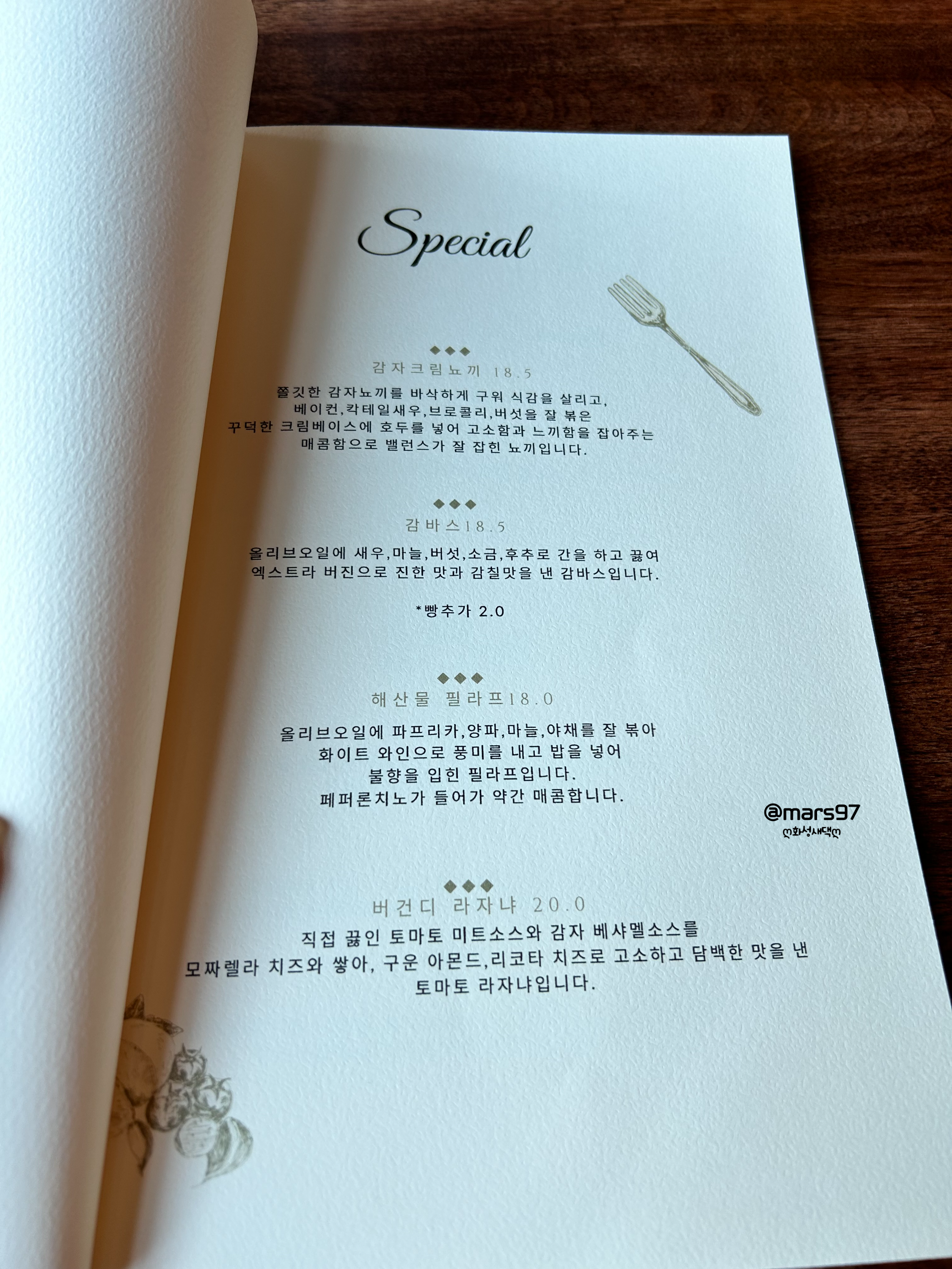 감자 크림 뇨끼는 숟가락으로 소스와 함께 먹었어요