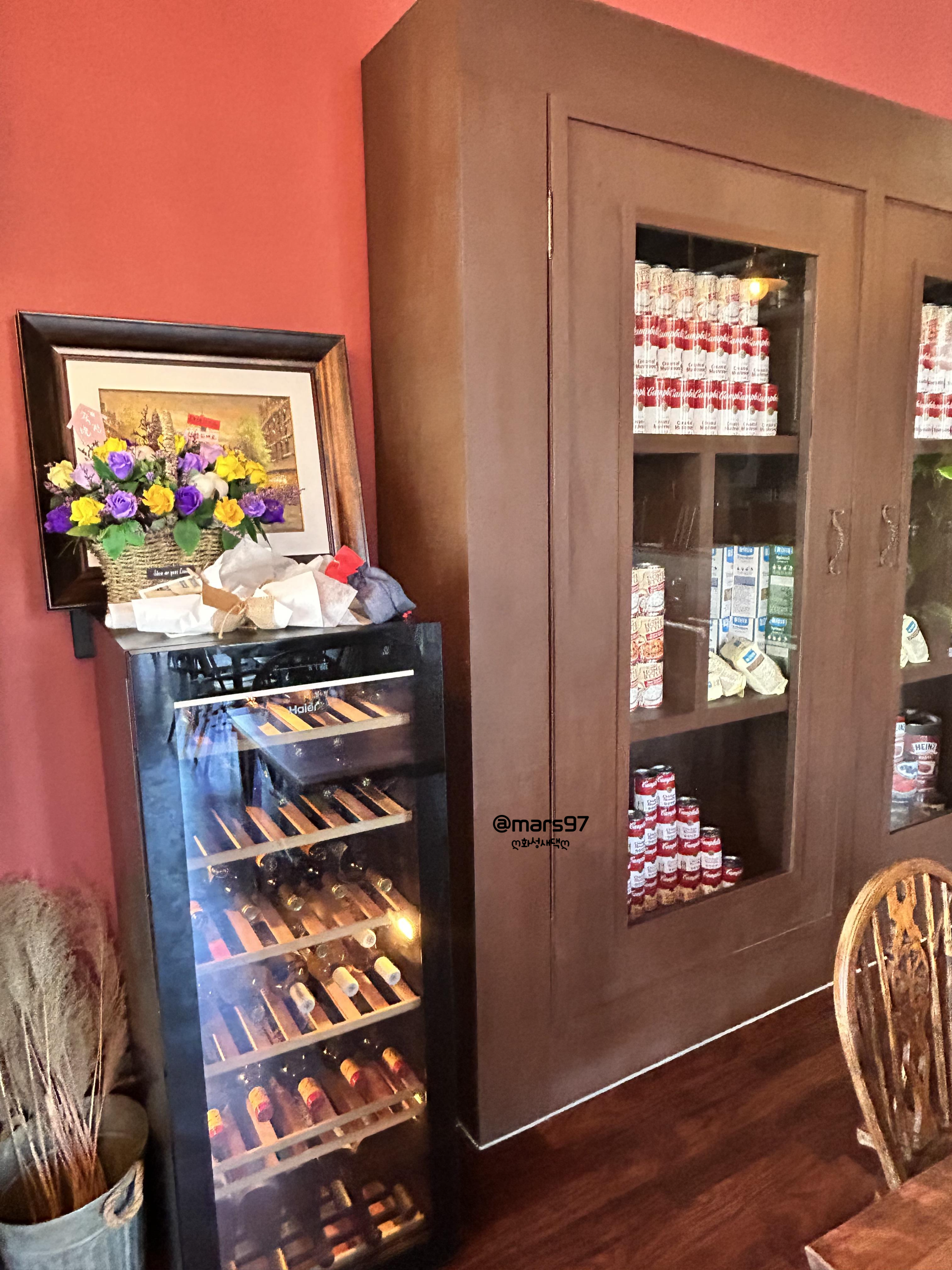 와인 종류가 많은 만큼 한쪽에 와인 냉장고도 있어요
