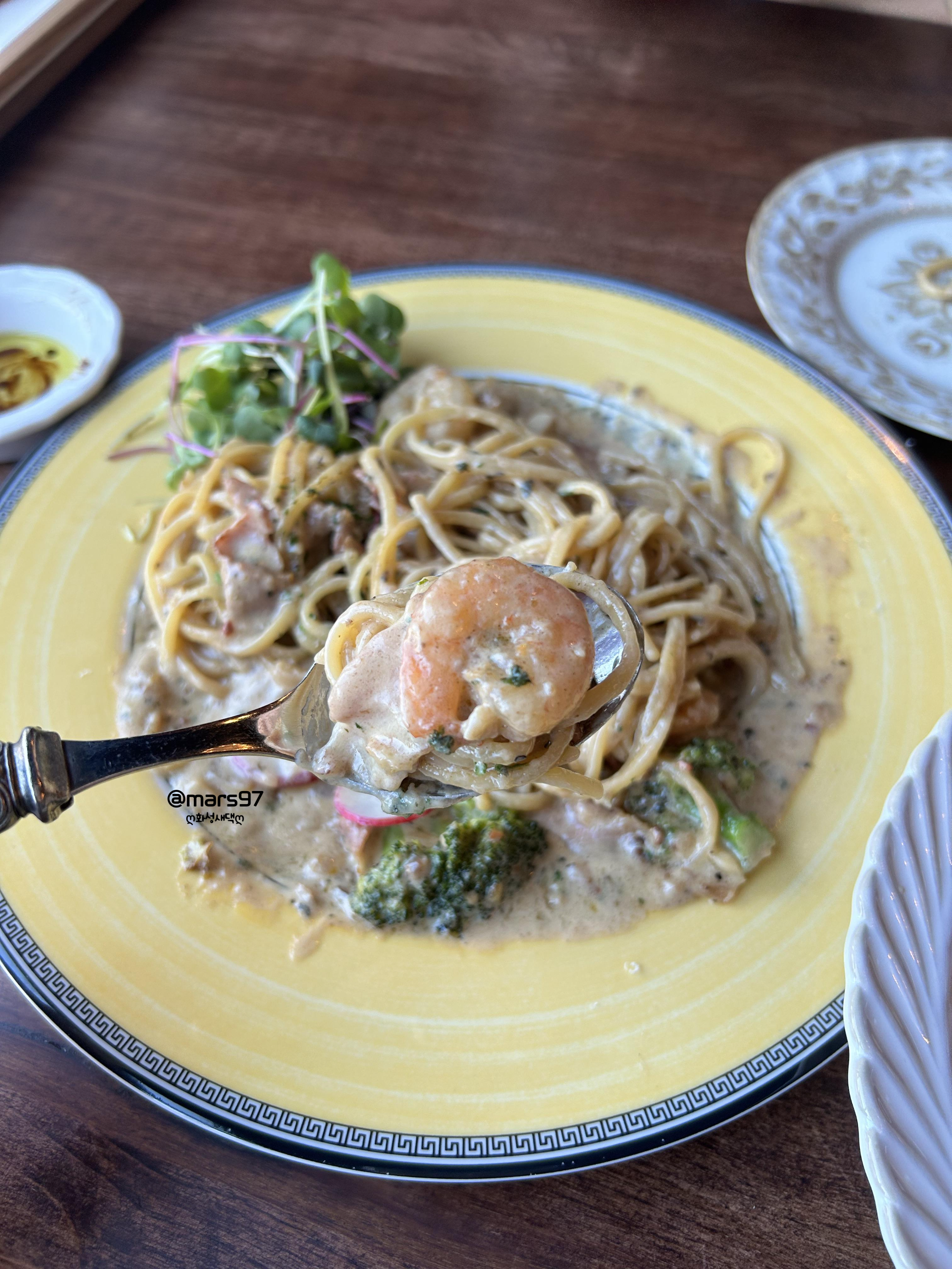 예전에는 크림보다는 해산물이 들어가거나 알리오 올리오 같은 파스타만 먹었는데