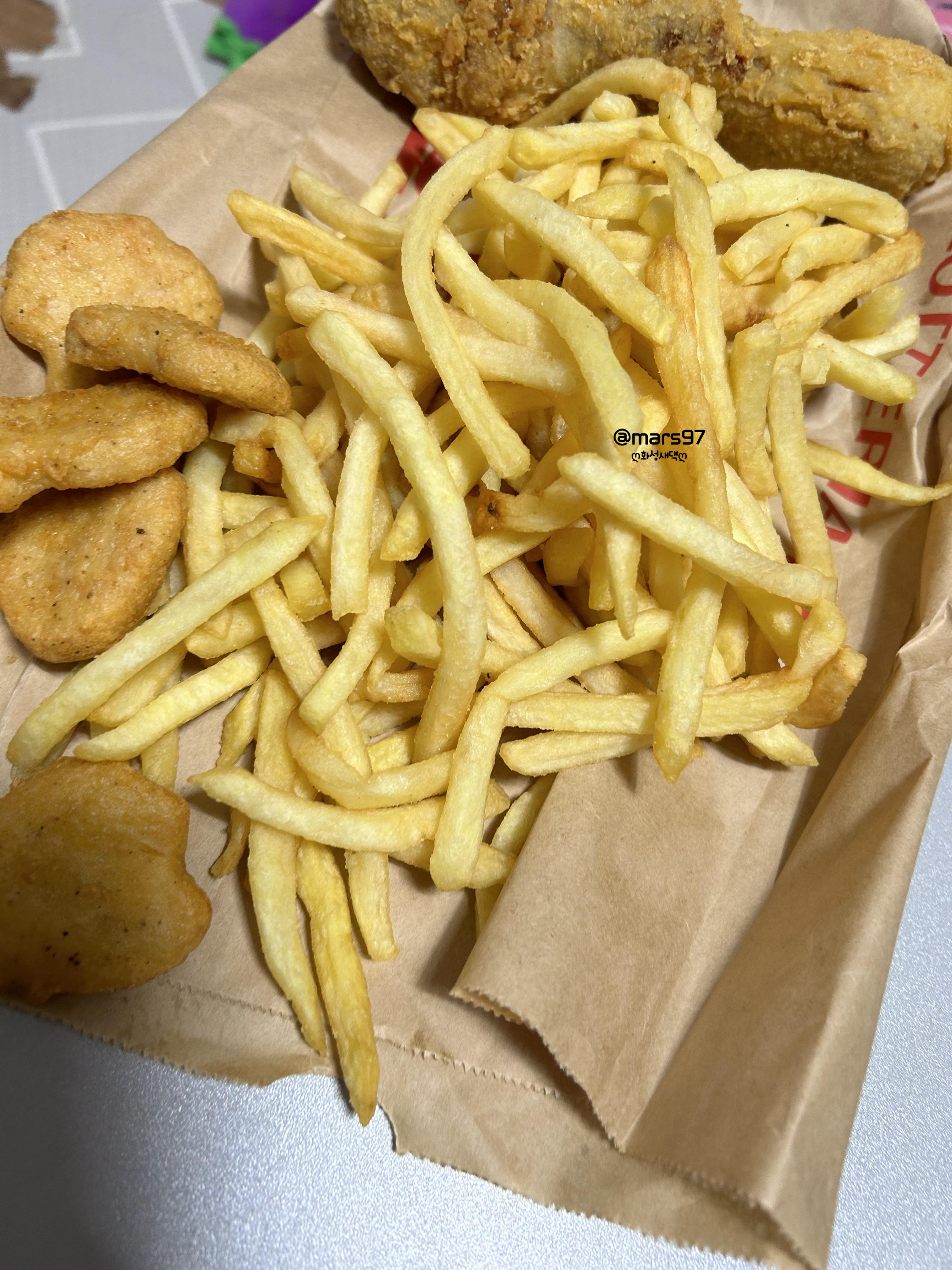 햄버거에 빠질 수 없는 감자튀김과 치킨 너겟도 함께 주문했어요