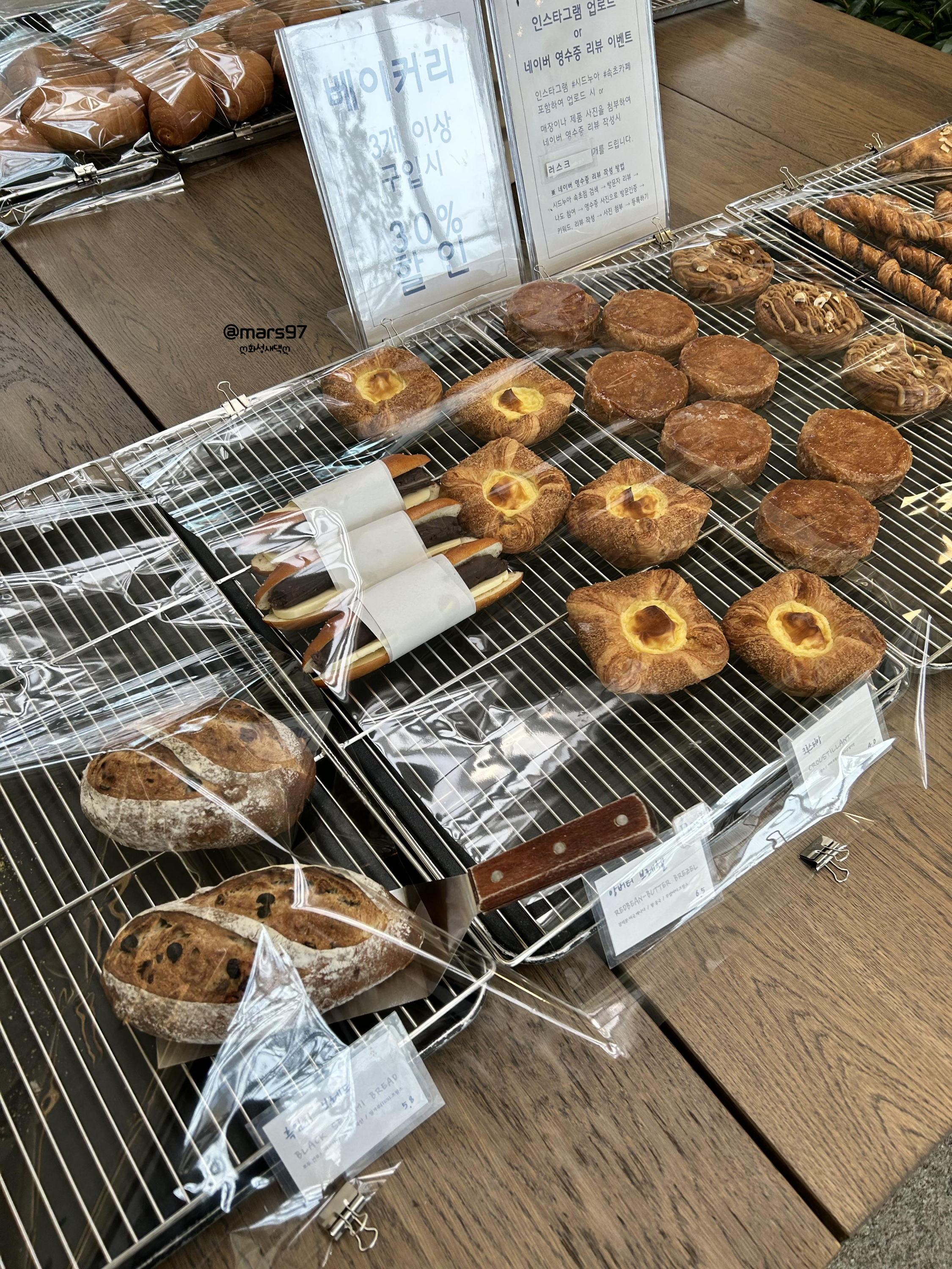베이커리류는 3개 이상 구매 시 30% 할인하더라고요!!!