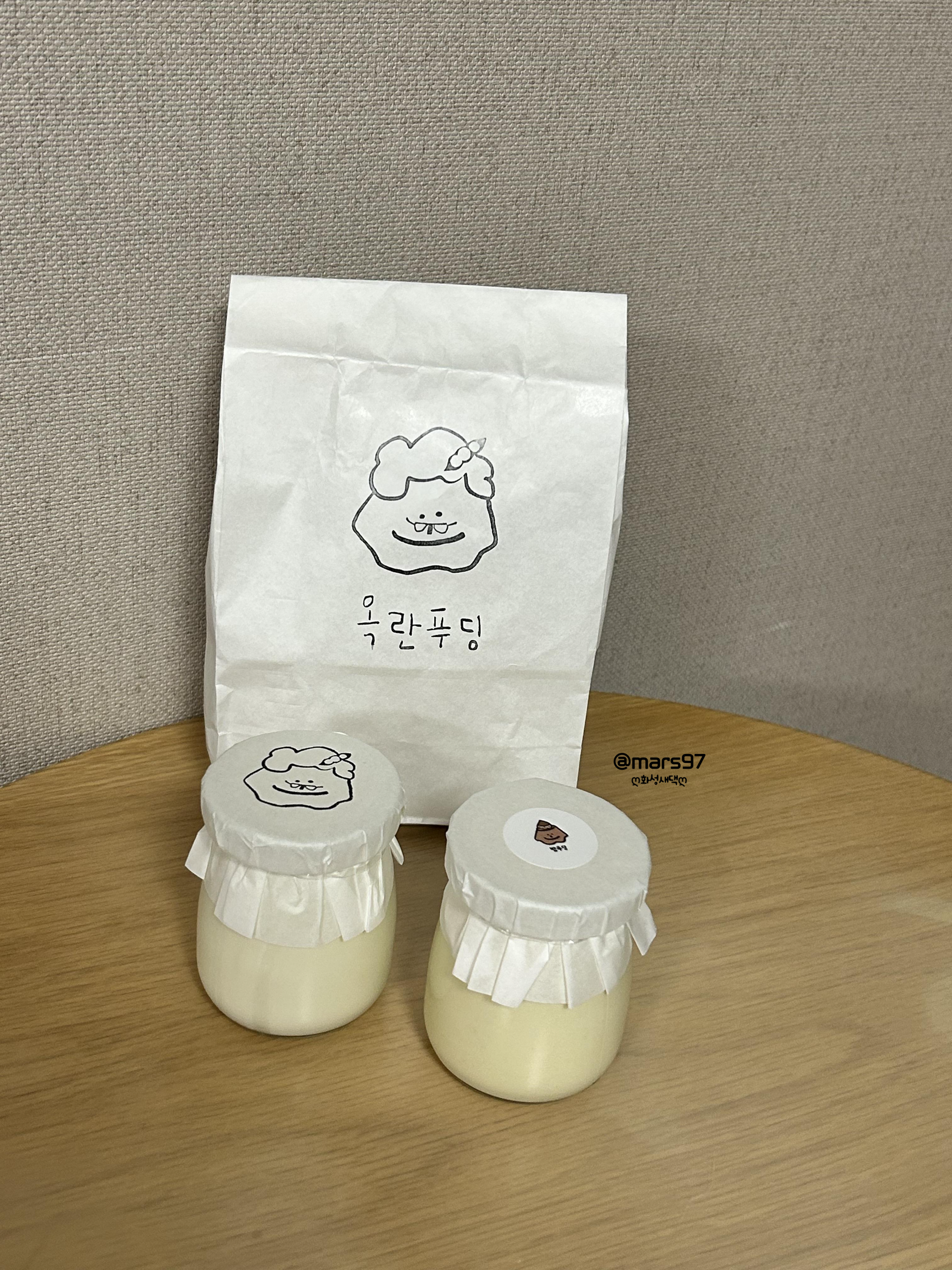 포장 봉투에 그려진 푸딩 모양 너무 귀여워요