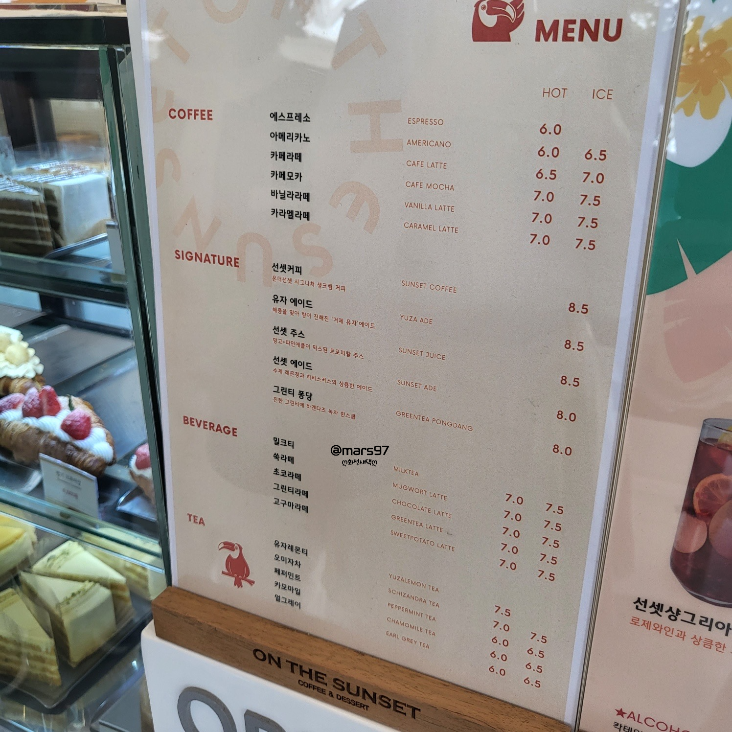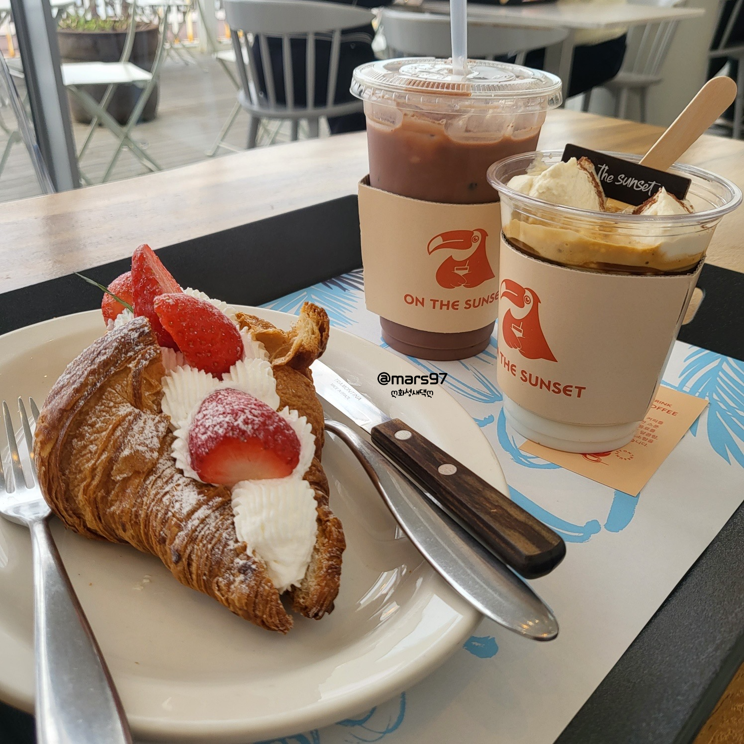 커피는 선셋커피와 아이스 코초 라떼로 주문했어요