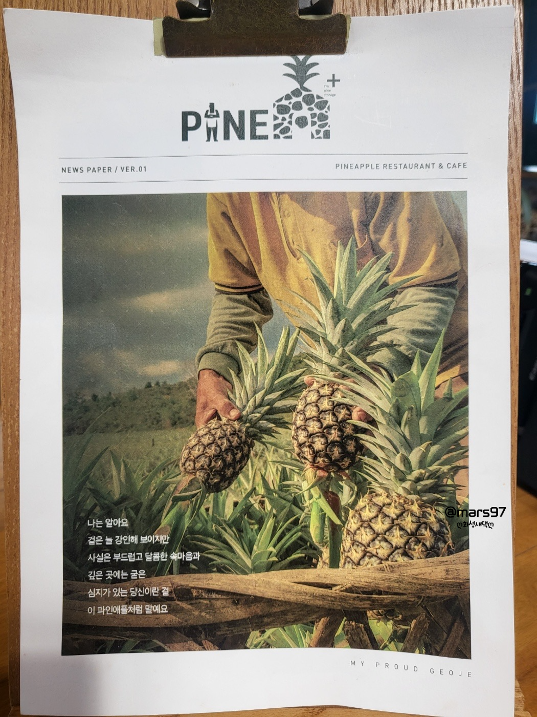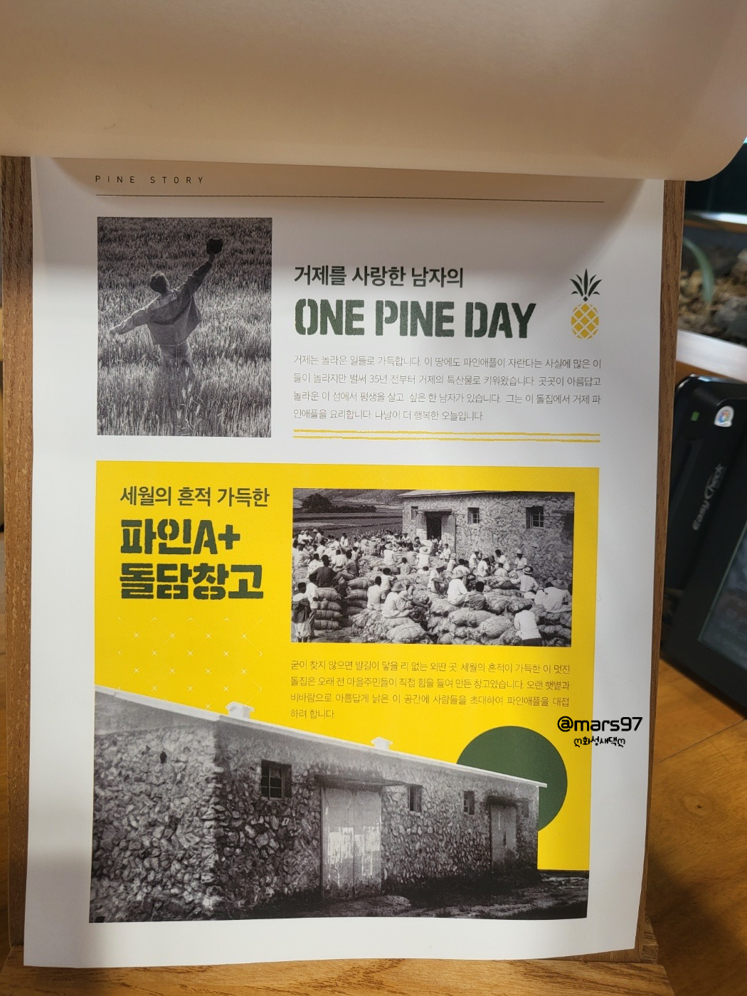 파인애플에 관한 내용이 쓰여 있는 안내문? 같은 것도 있어요