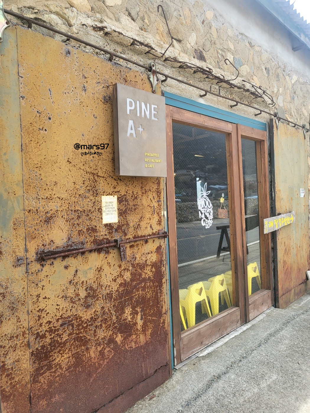 파인애플 모형이 가득 있는 문이 맞이 해주더라고요