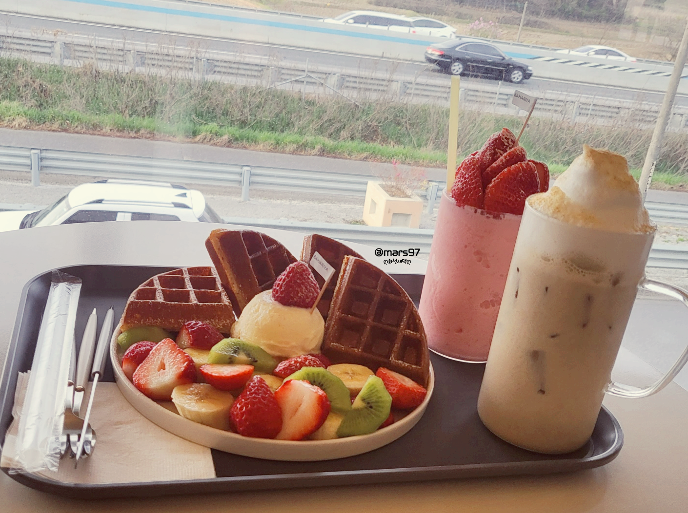 곧이어 주문한 음료와 와플이 나왔어요