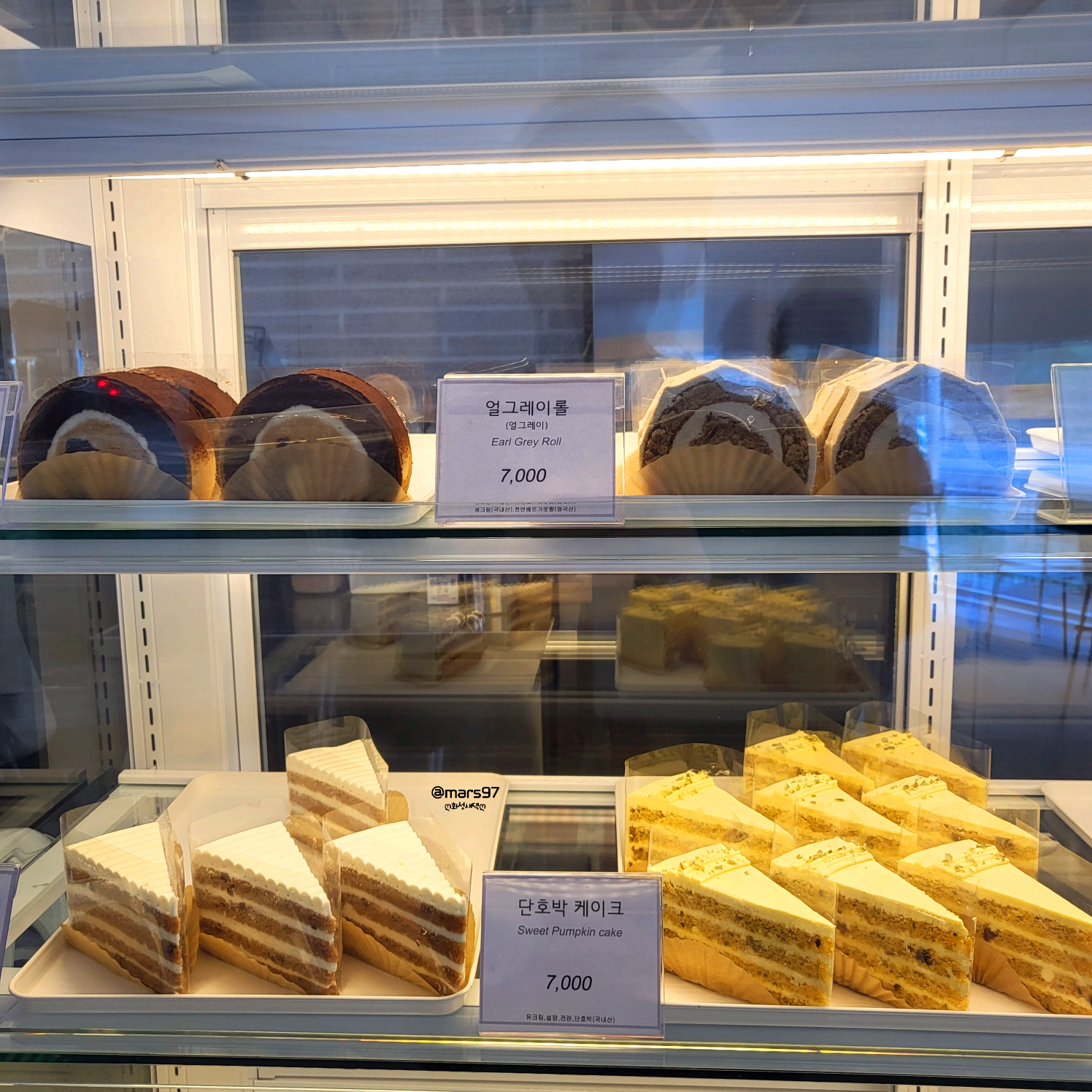 쇼케이스 안에는 롤케이크와 조각 케이크도 있어요