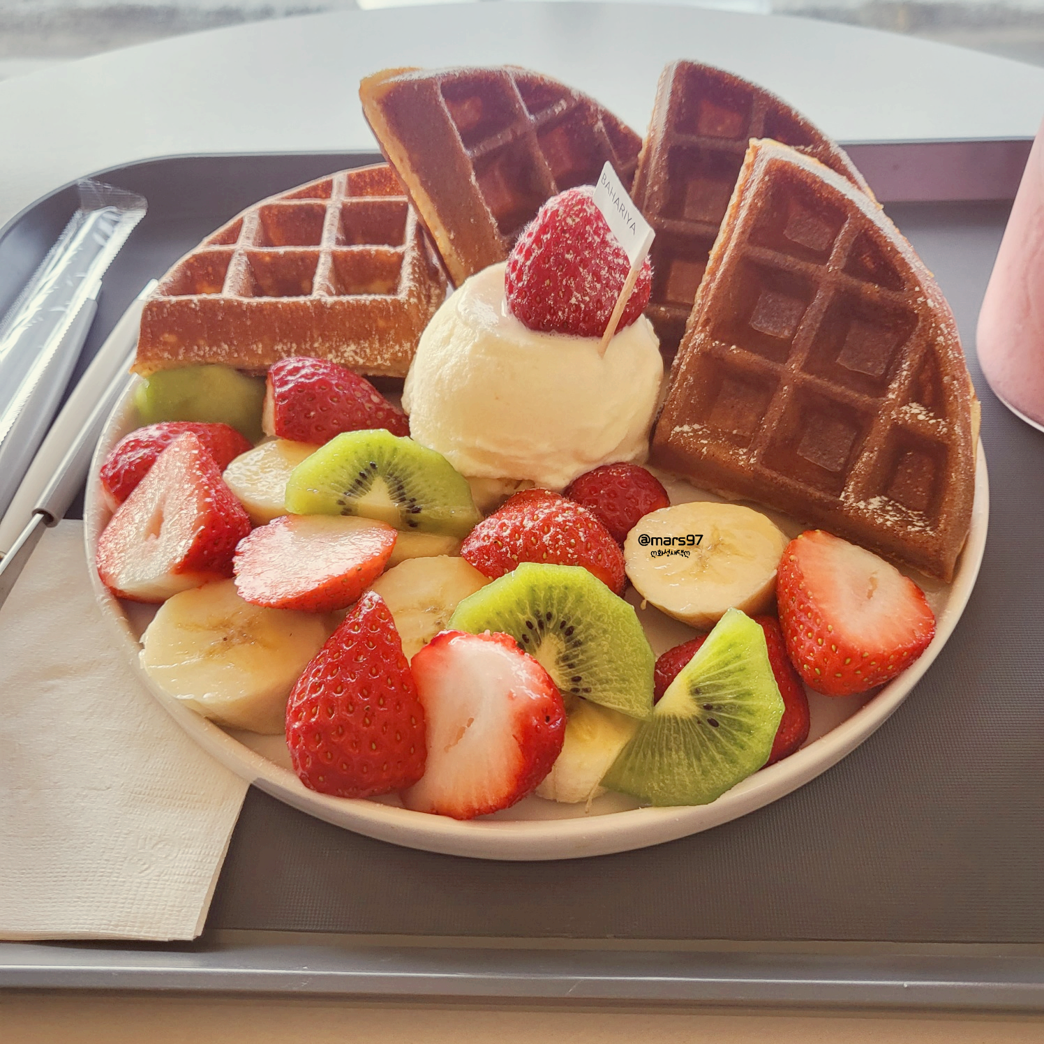 와플 4조각, 아이스크림, 과일까지~