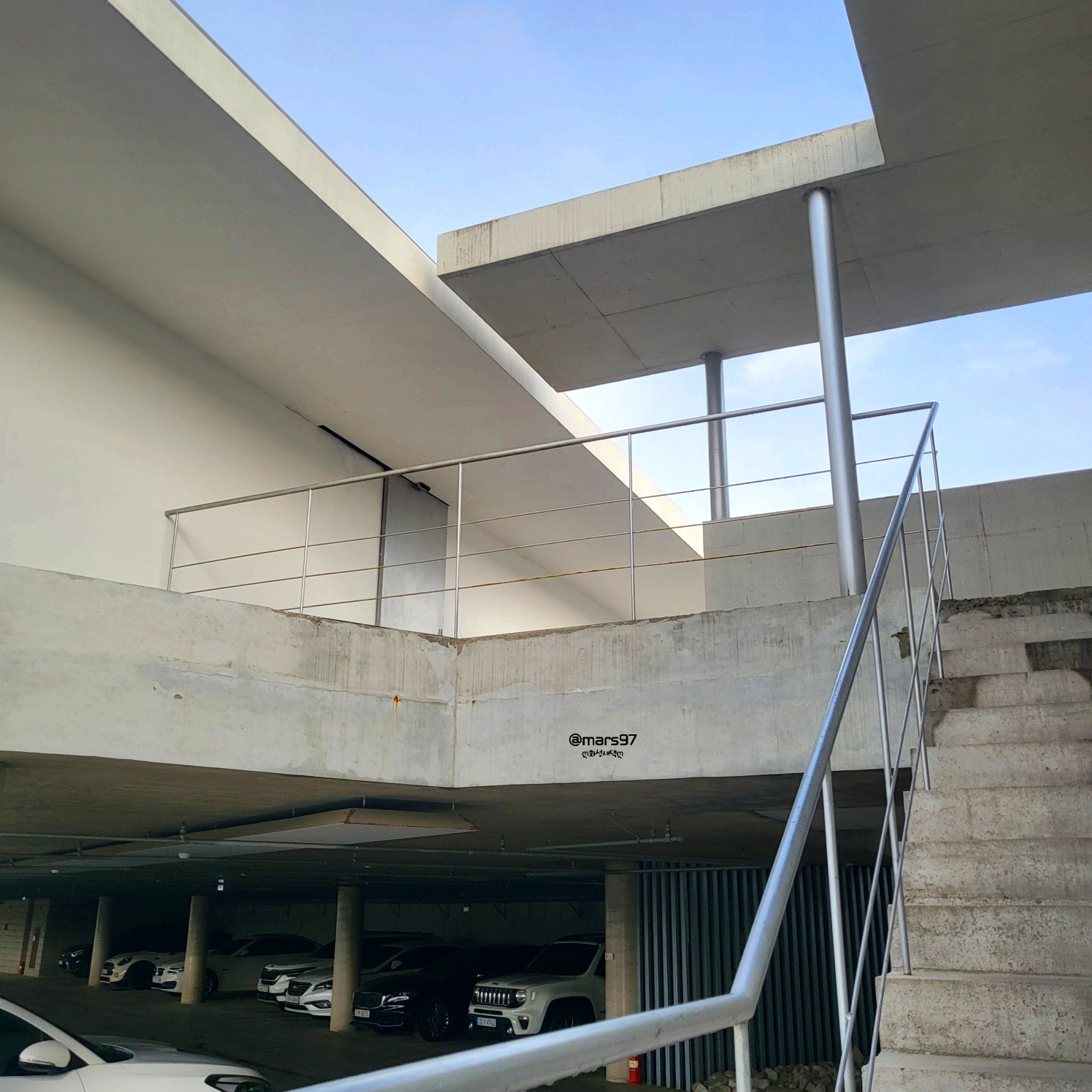주차를 하고 옆에 있는 계단을 이용해 올라가면 돼요