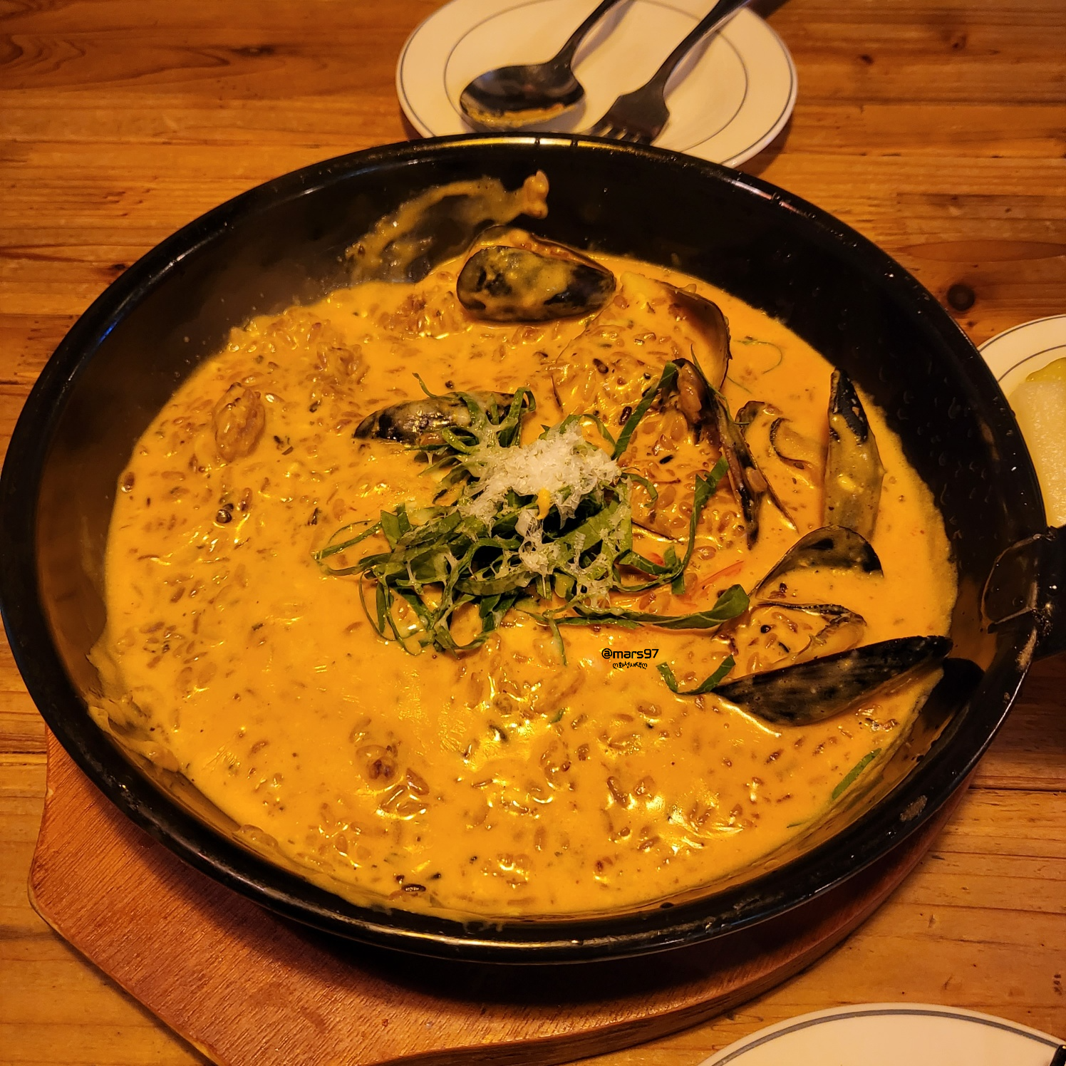 고추장 팬 스테이크 파스타와 해물 리조또로 주문했어요