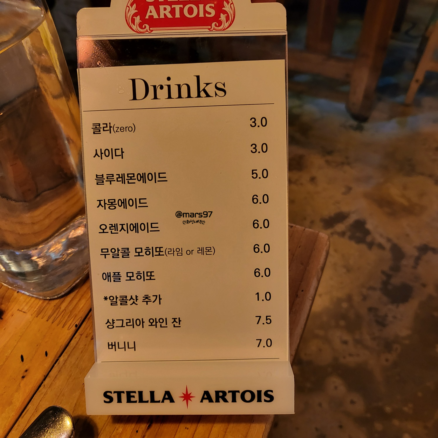 주류는 무알콜도 있고 와인과 맥주까지 다양해요