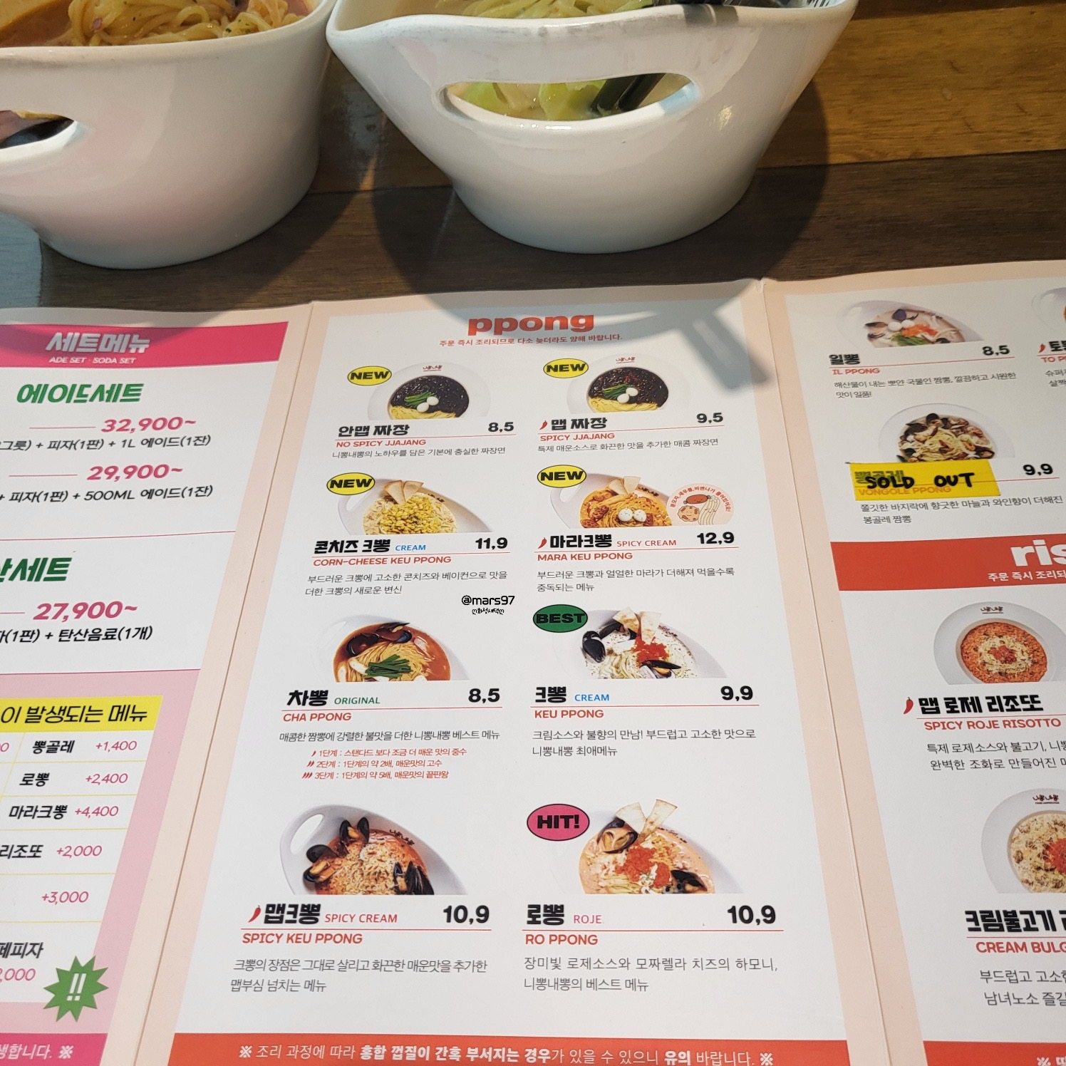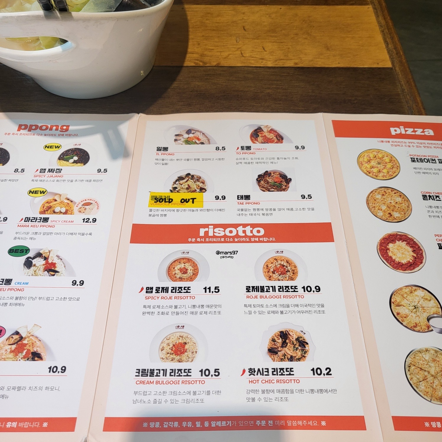 일뽕은 해산물이 들어간 하얀 국물 베이스의 짬뽕이에요