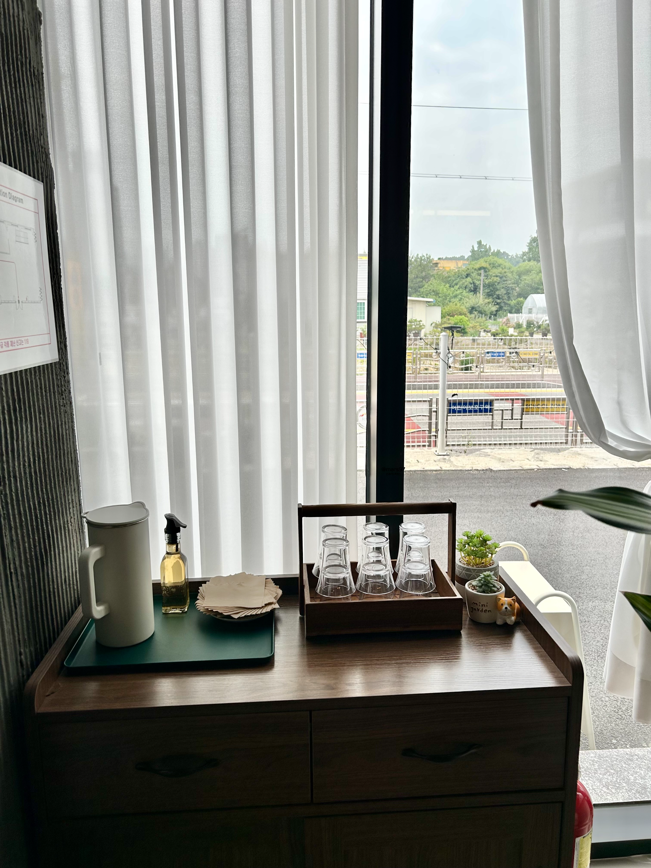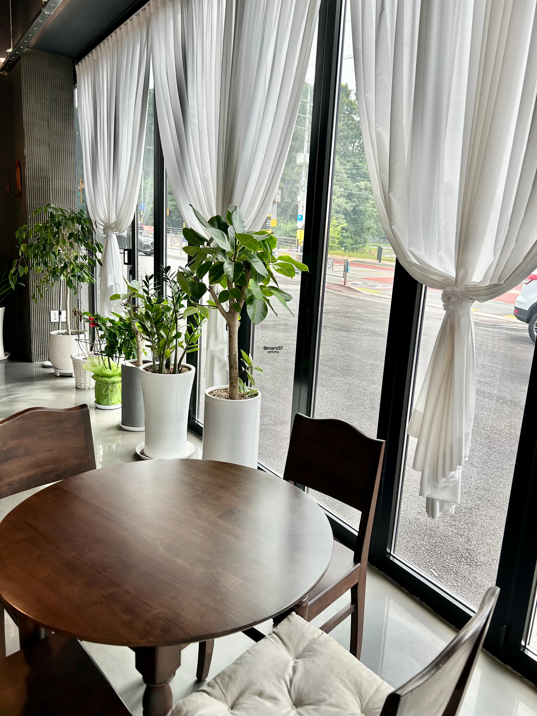 하늘하늘한 쉬폰 커튼과 함께 우드 테이블이 잘 어울리더라고요~
