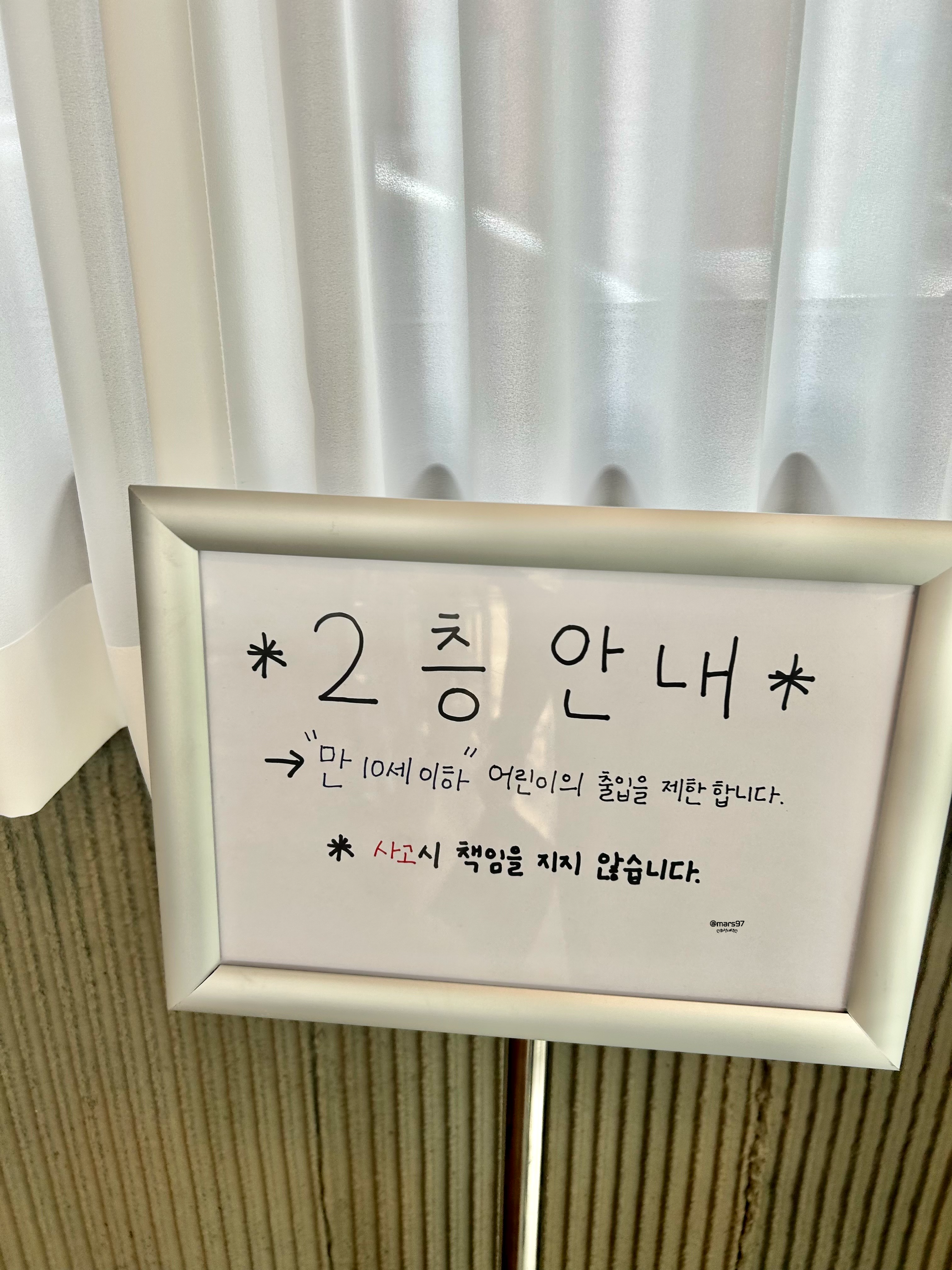 2층은 만 10세 이하 어린이는 출입을 제한하고 있어요
