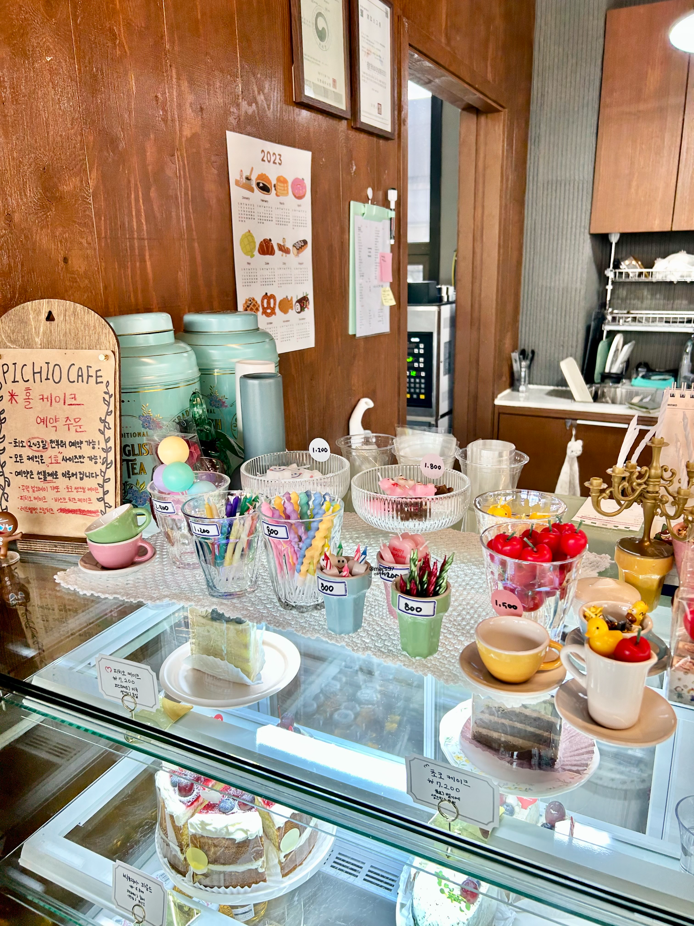 아래쪽에 쇼케이스 안쪽에는 조각 케이크들이
