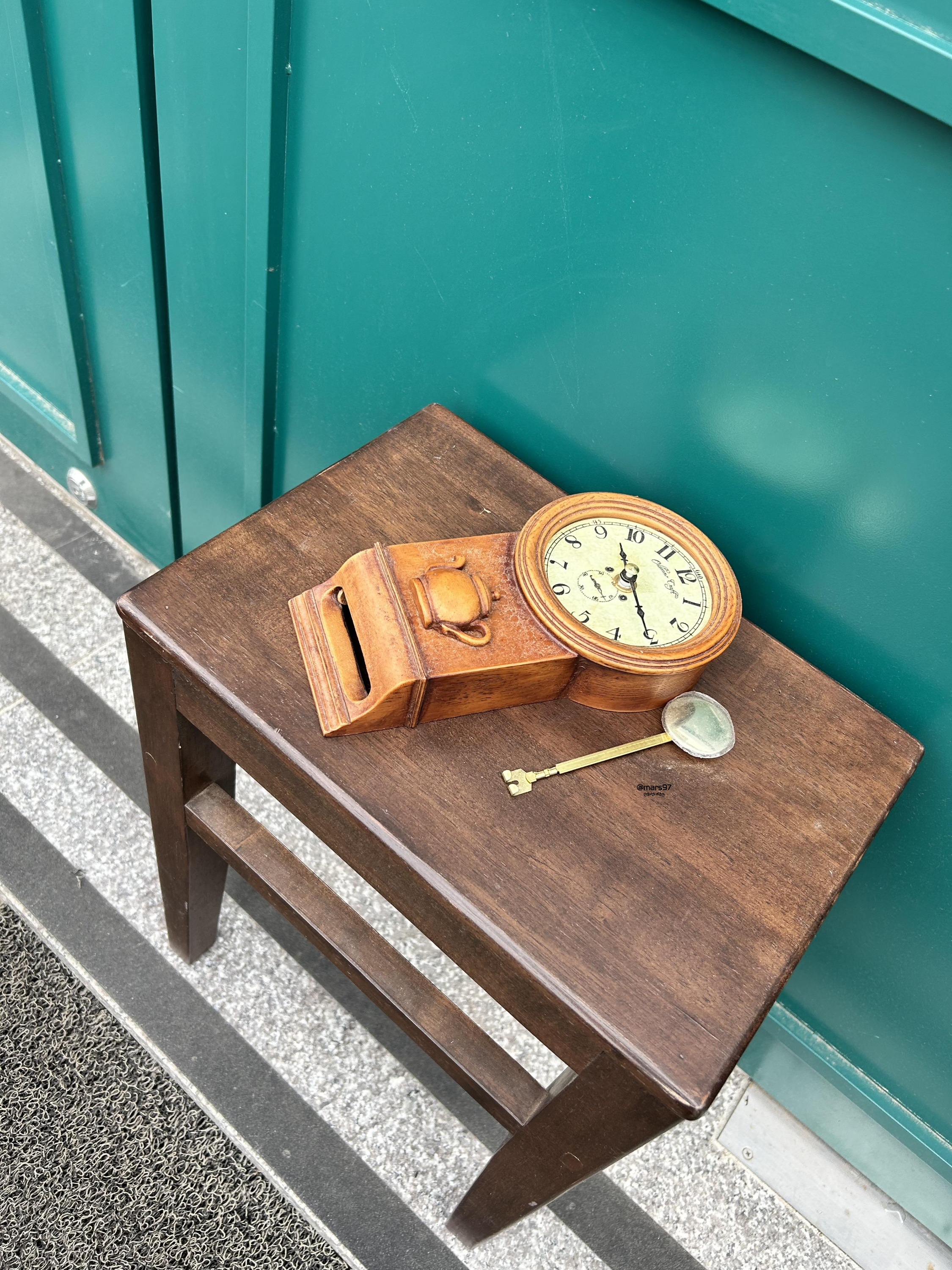작은 테이블 위에는 시계가 놓여 있어요