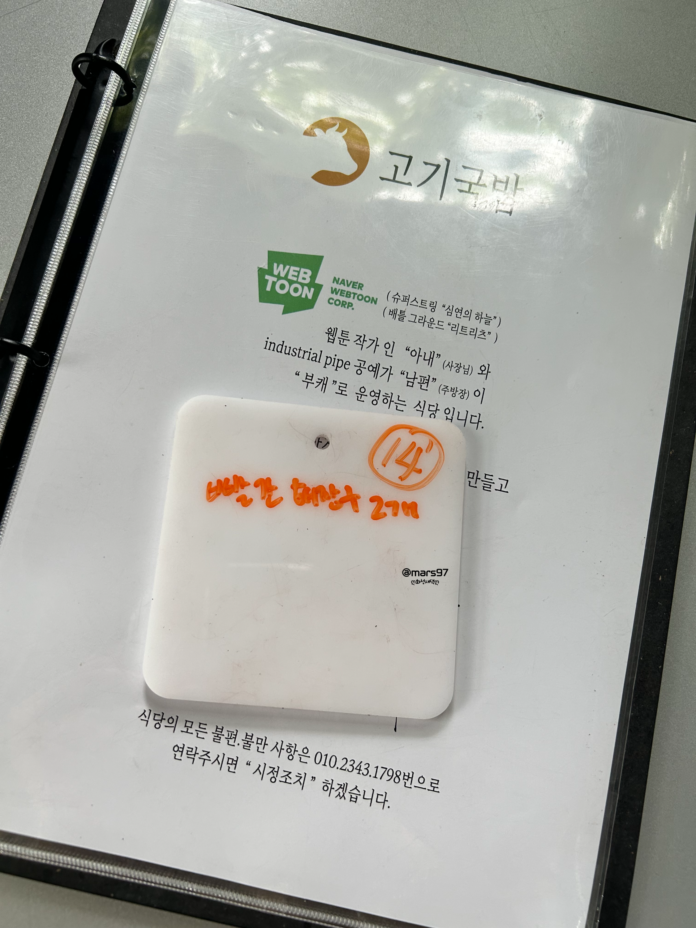 주문은 작은 대리석? 판에 적어서 가져다주면 돼요