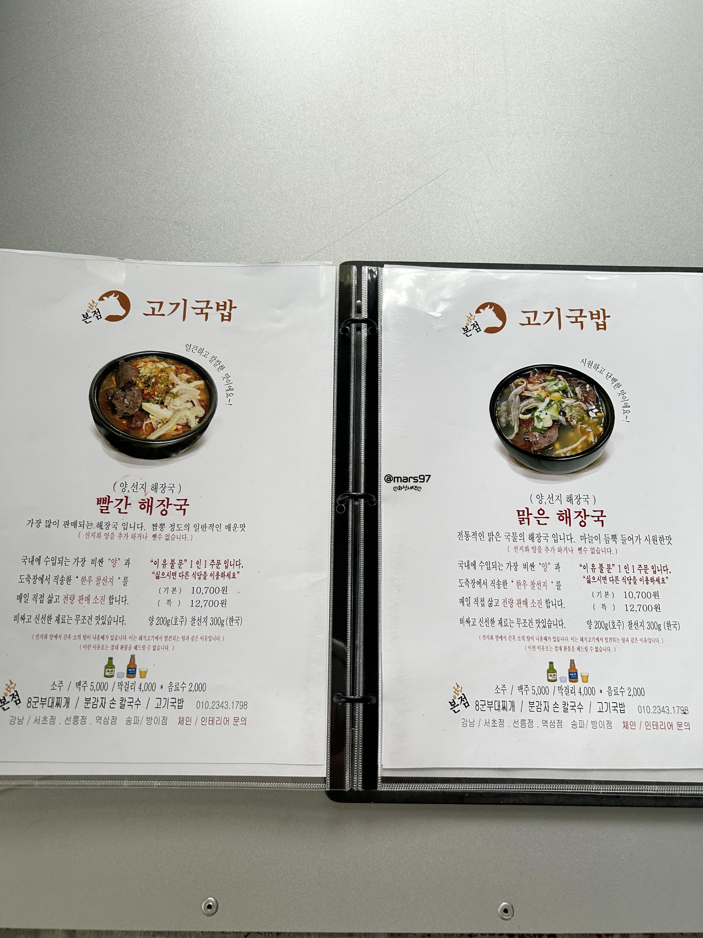 메뉴는 다양하게 있어요 빨간 해장국과 하얀 국밥, 하얀 곰탕 등등
