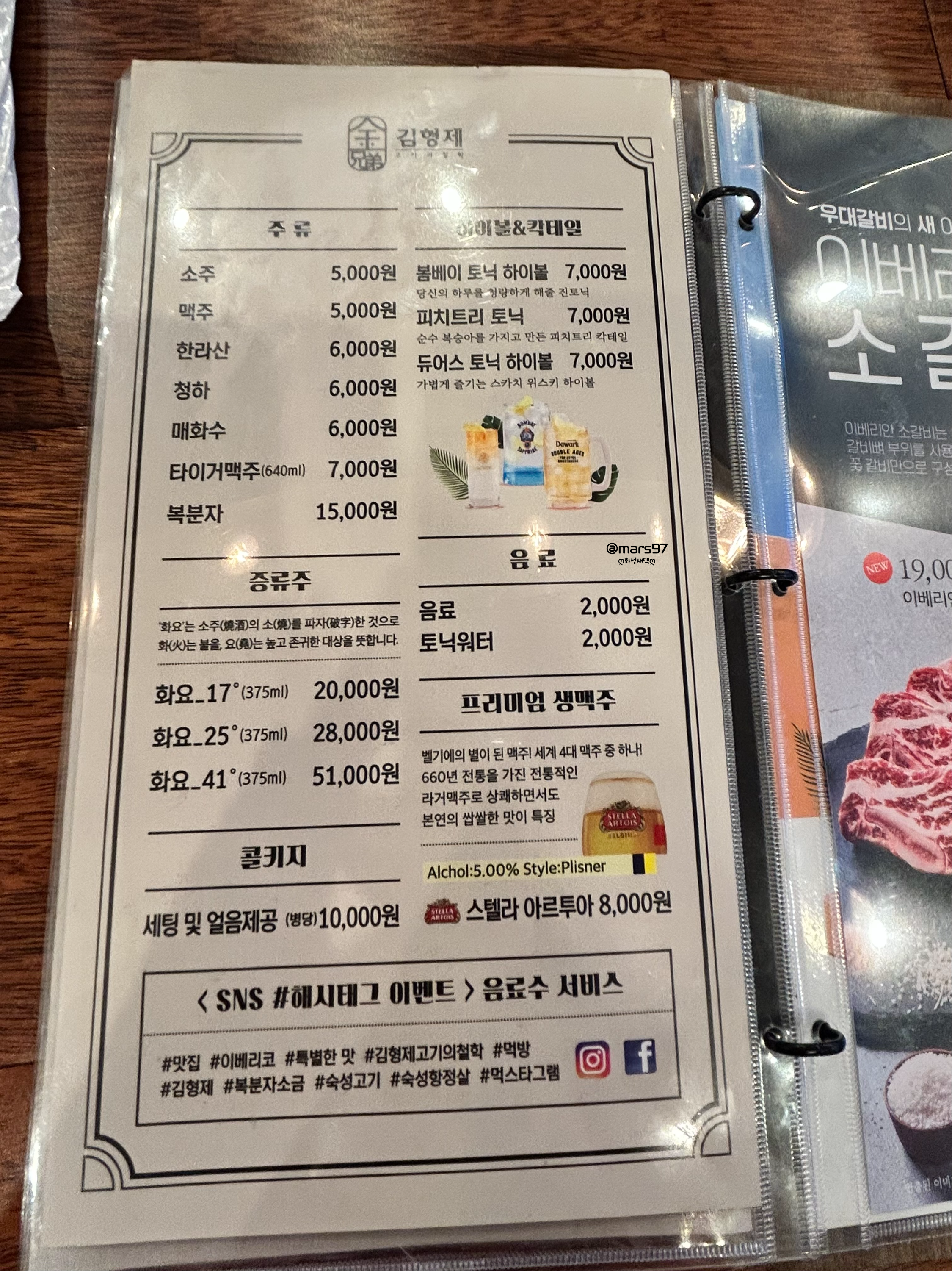 고기 메뉴 이외에도 주류 종류도 다양하게 많았어요