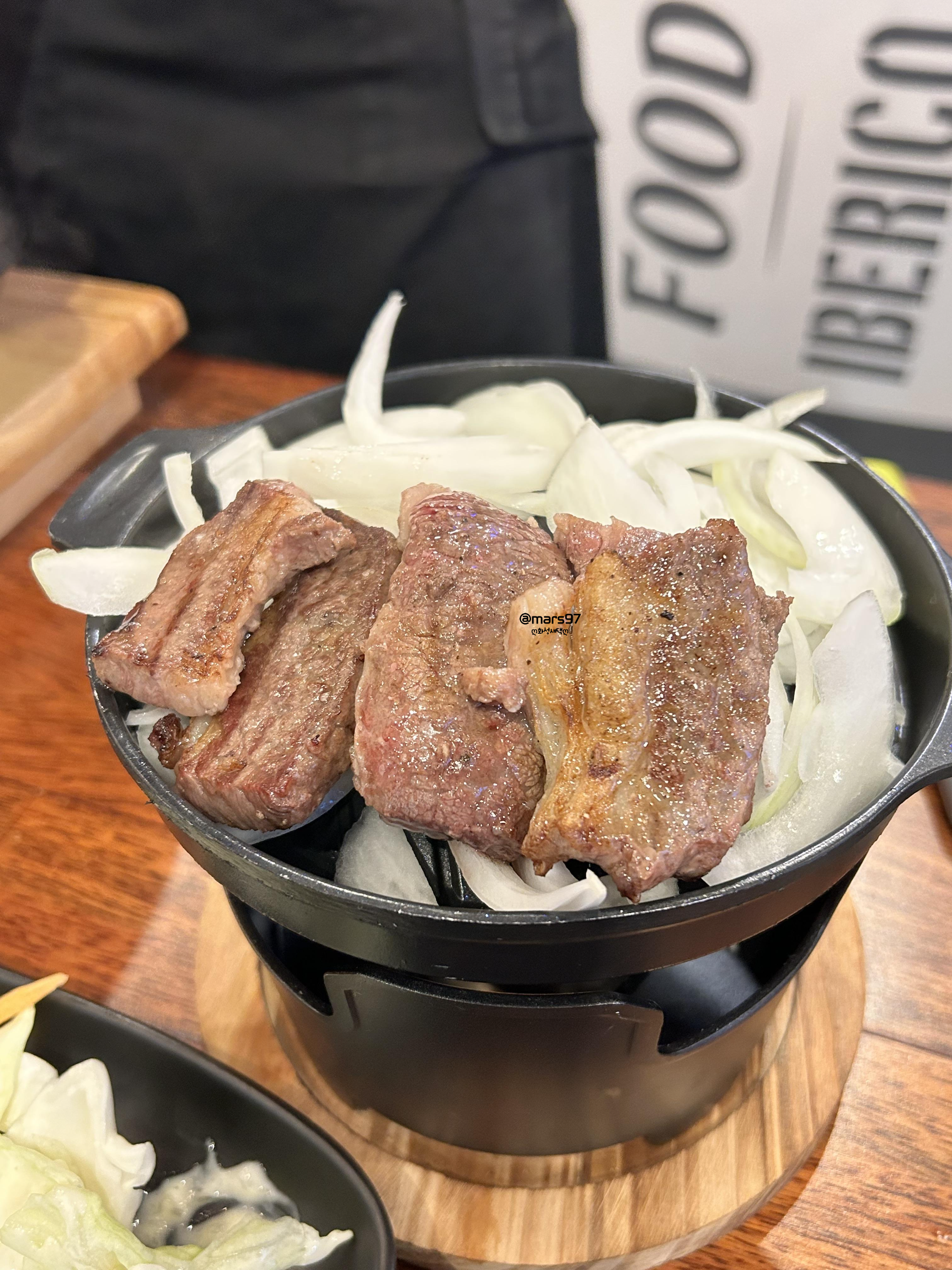 뭘 먹을까 고민하다가 이베리안 소갈비로 주문했어요