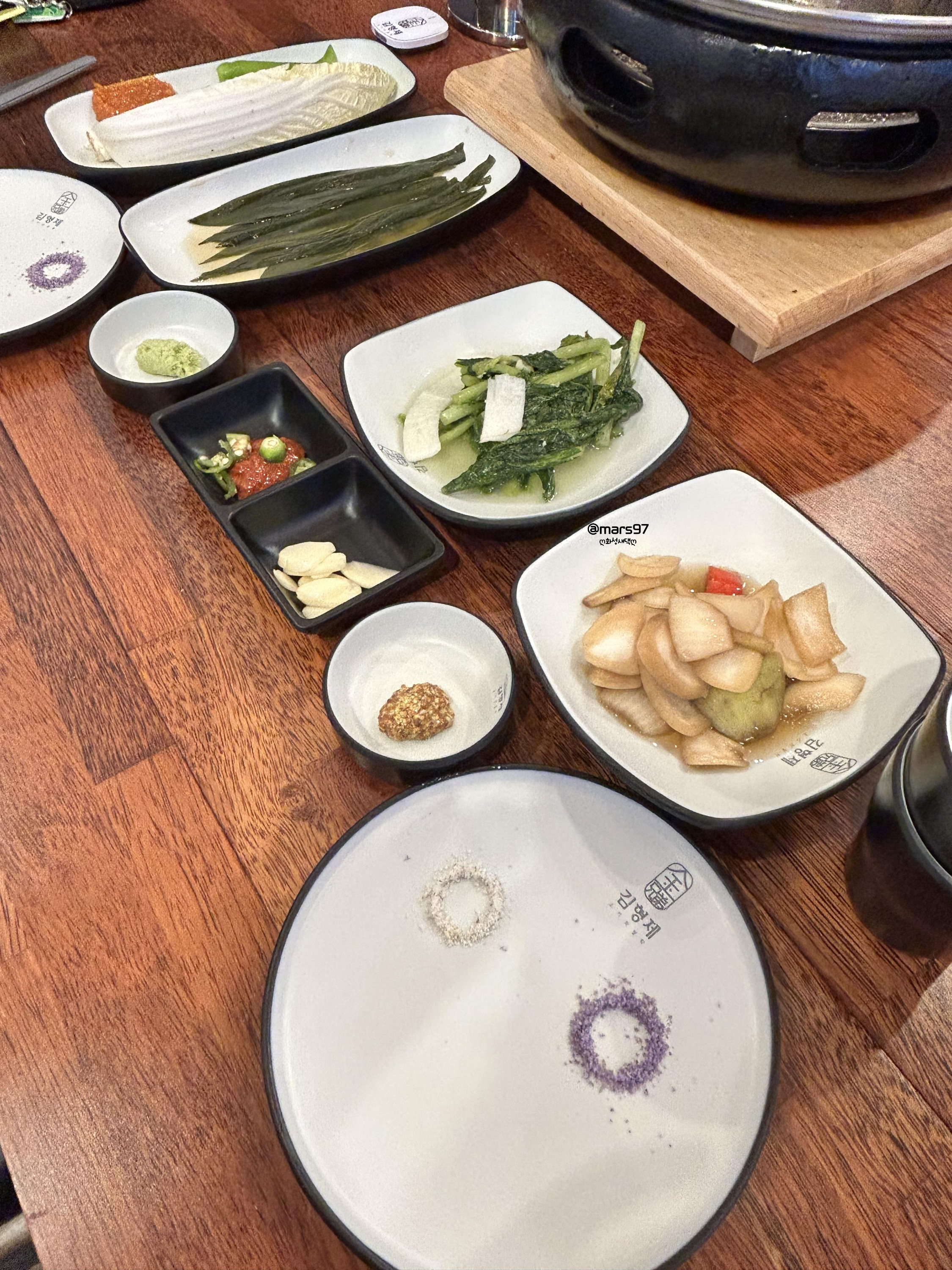 밑반찬을 먹다 보니 이베리안 소갈비가 나왔어요