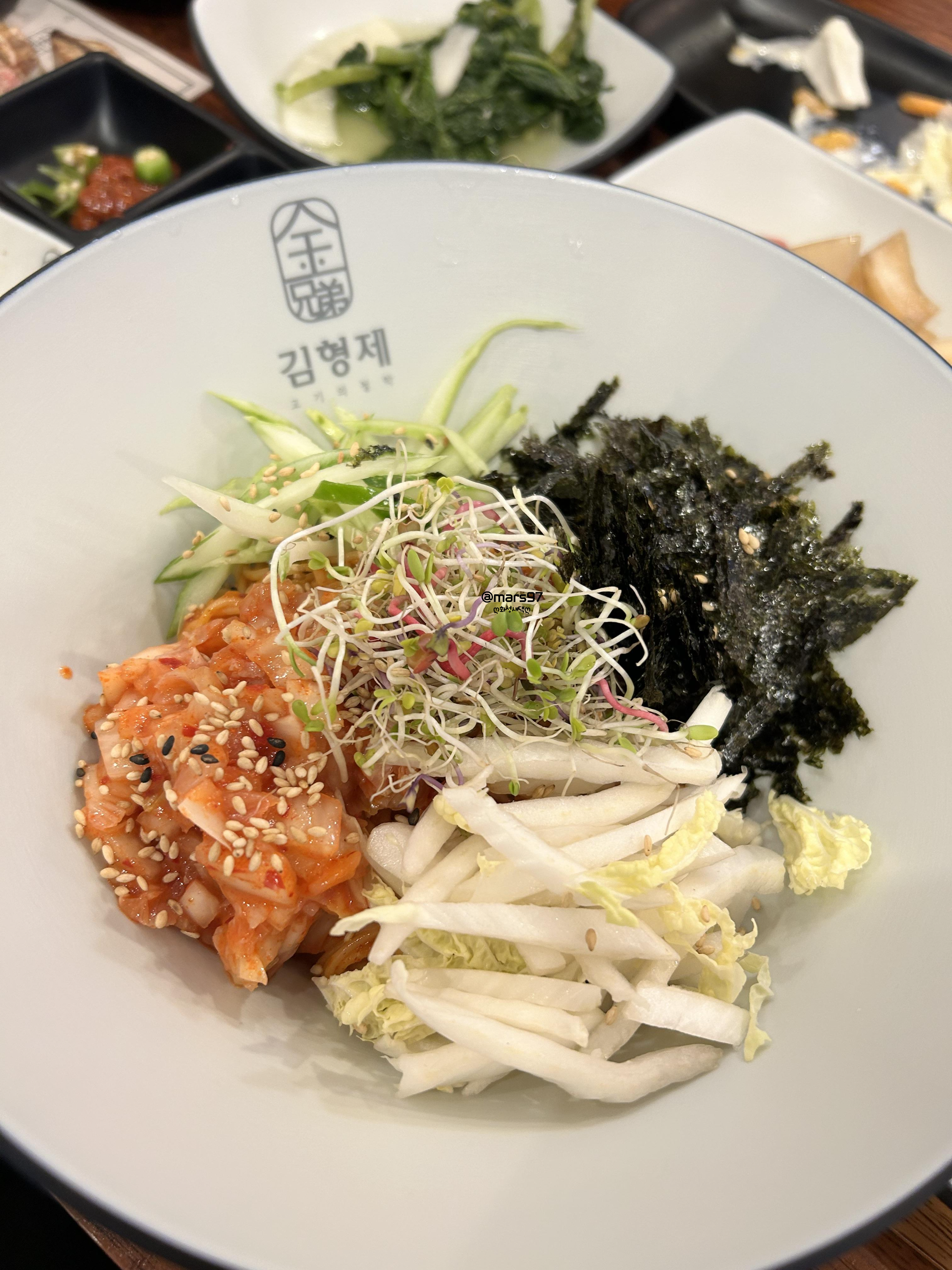 김치와 배추, 김가루, 새싹, 오이까지 푸짐하게 들어가 있어요