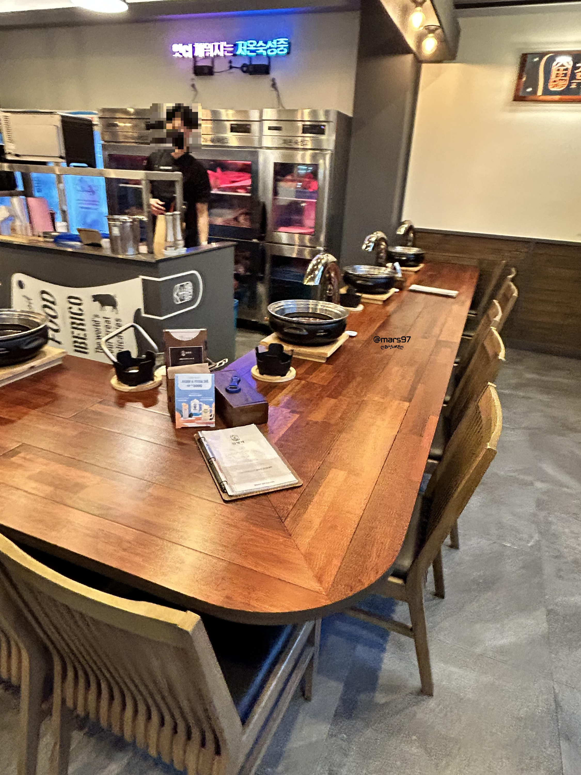 바 테이블의 좋은 점은 바로 앞에서 고기 준비하고 써는 모습을 볼 수 있다는 거예요~