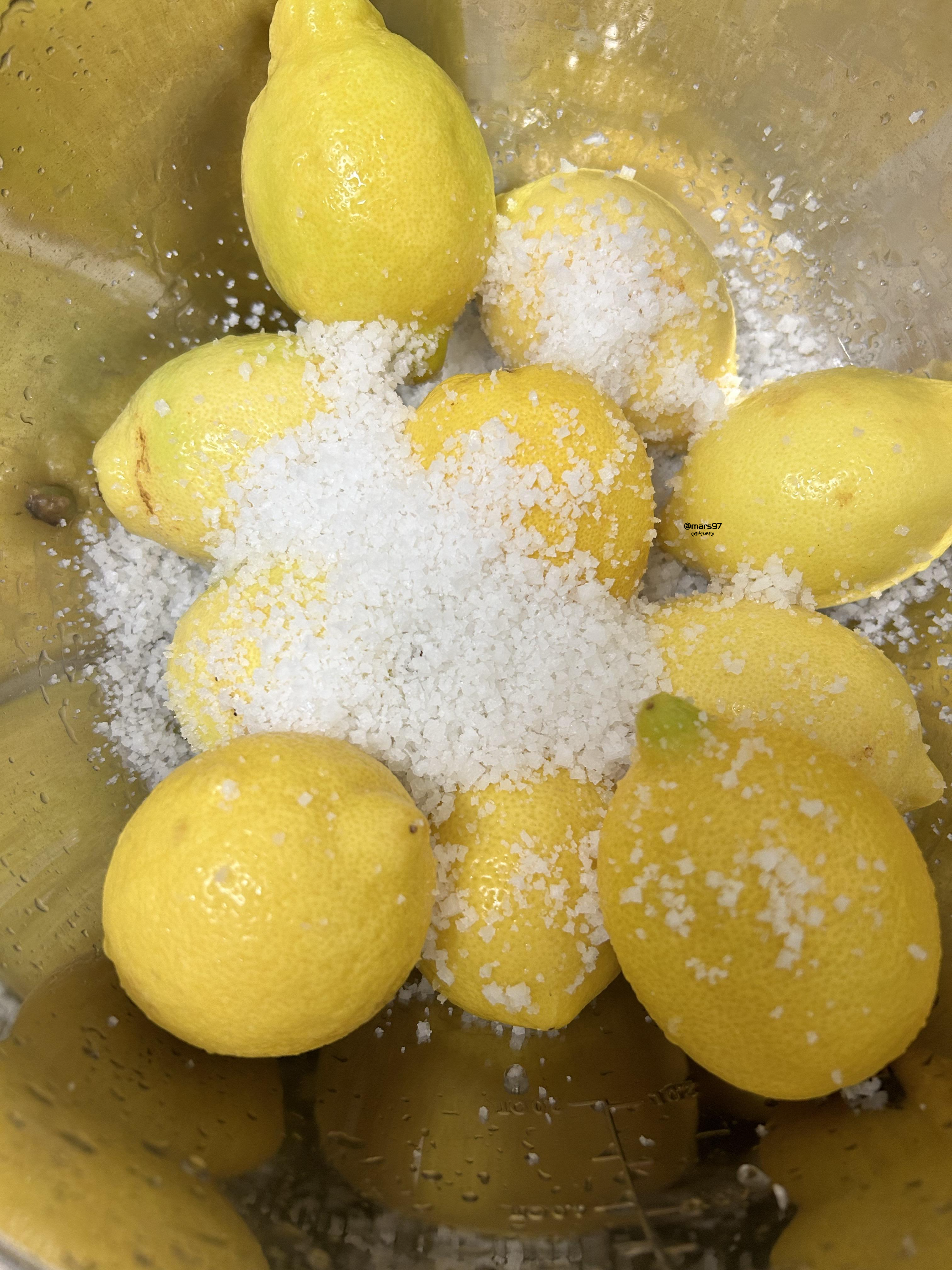 레몬을 흐르는 물에 한번 헹궈준 후 굵은소금을 뿌려주세요