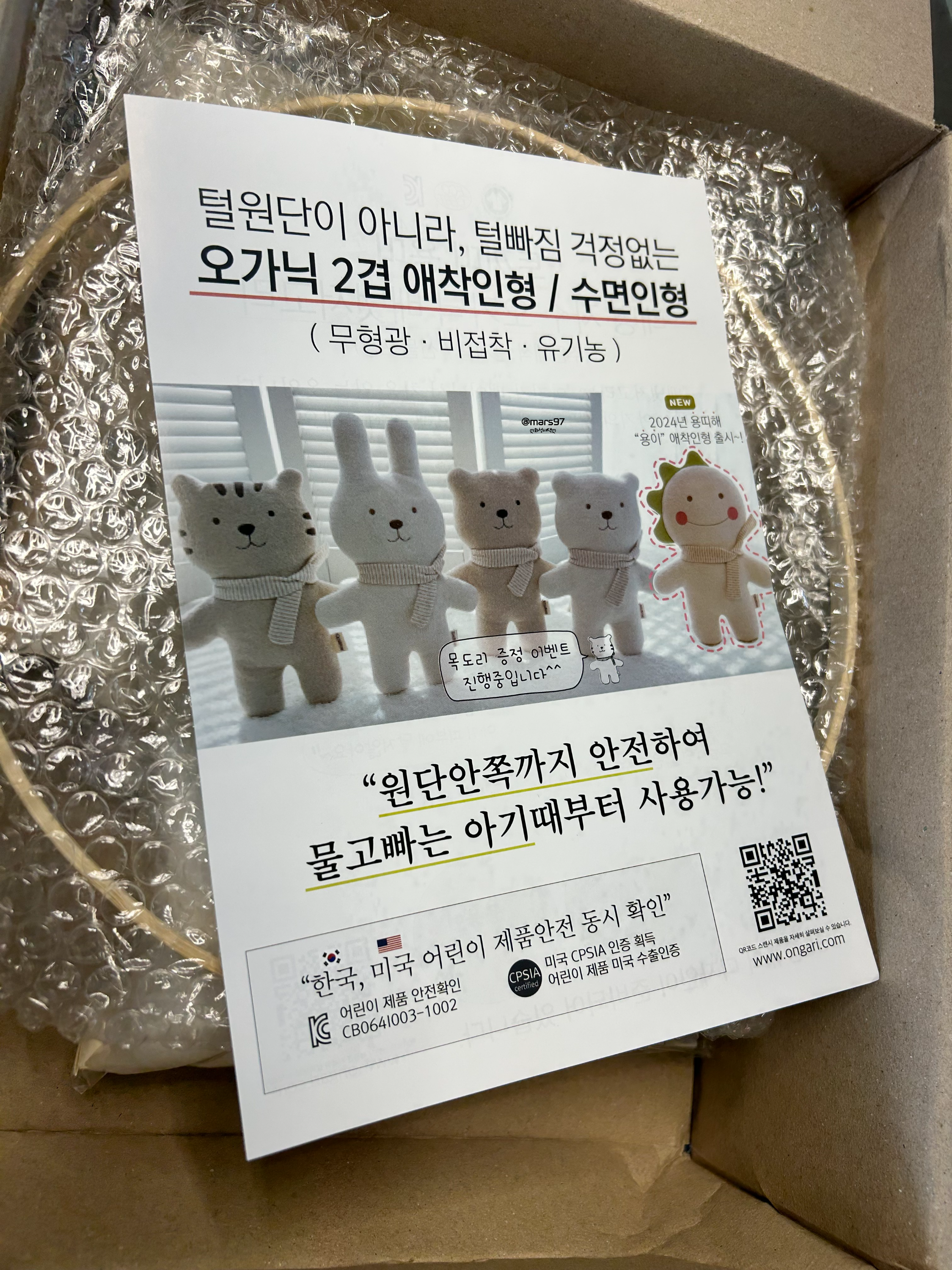 애착인형을 비롯해 딸랑이, 흑백 모빌까지 다양하게 주문했어요