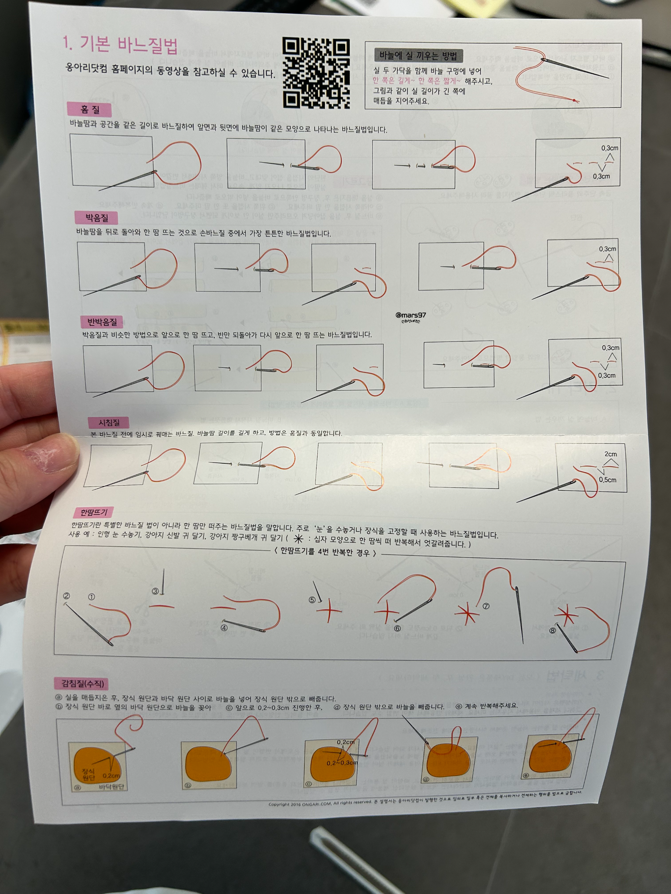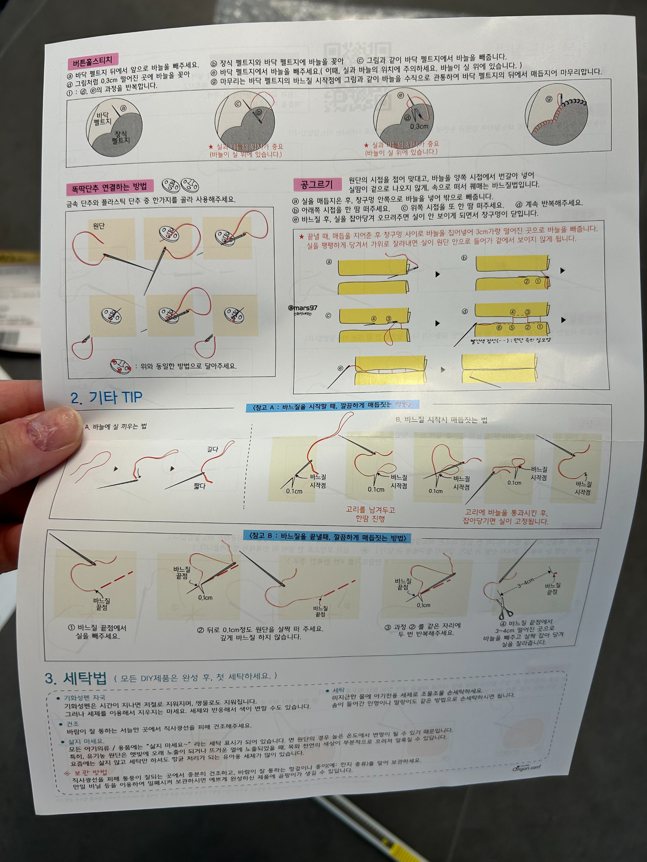 따로 있는 종이에는 바느질 방법이 나와있어요