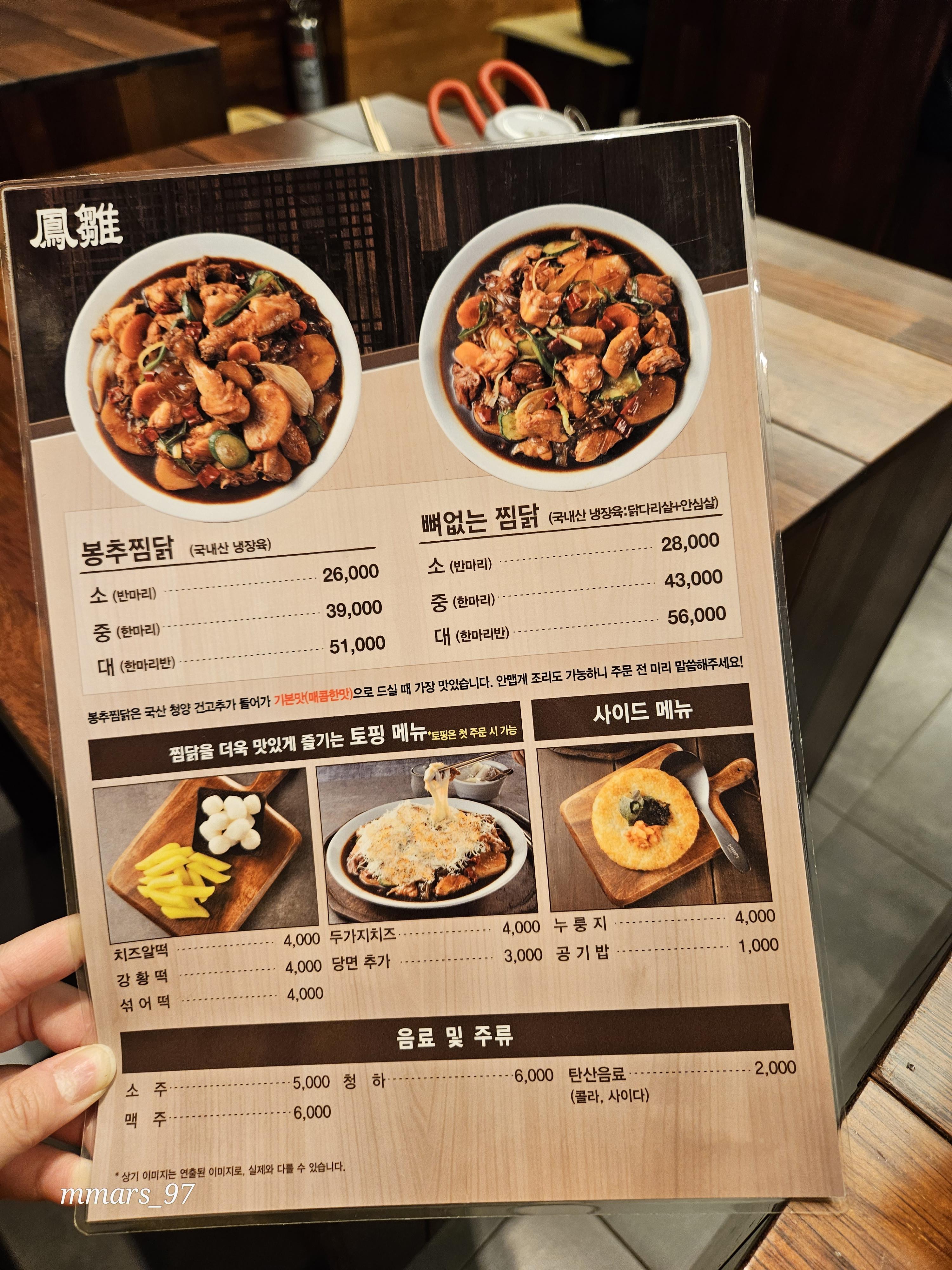 메뉴는 봉추 찜닭과 뼈 없는 찜닭