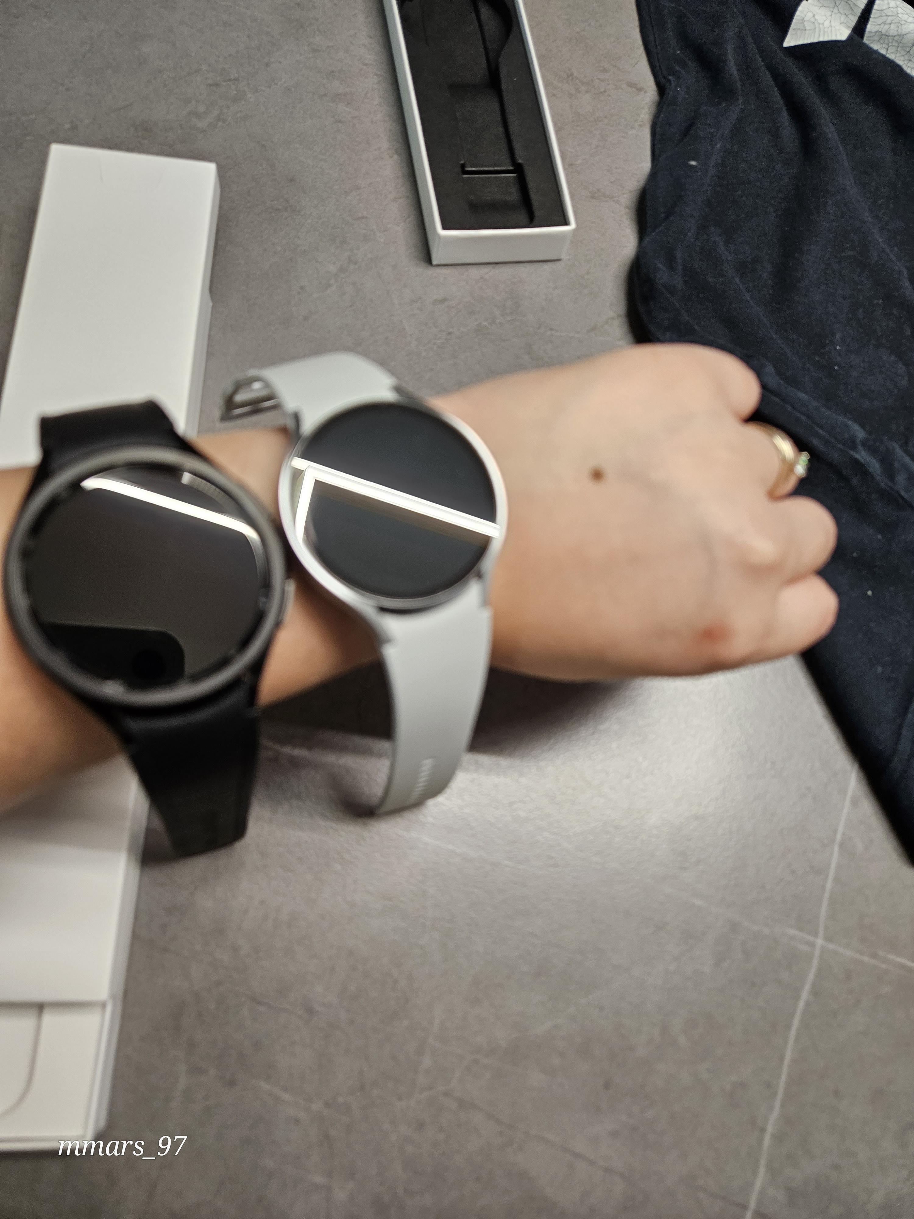 손목에 얹으니 확실히 갤럭시 워치6 클래식 47mm가 훨씬 커요