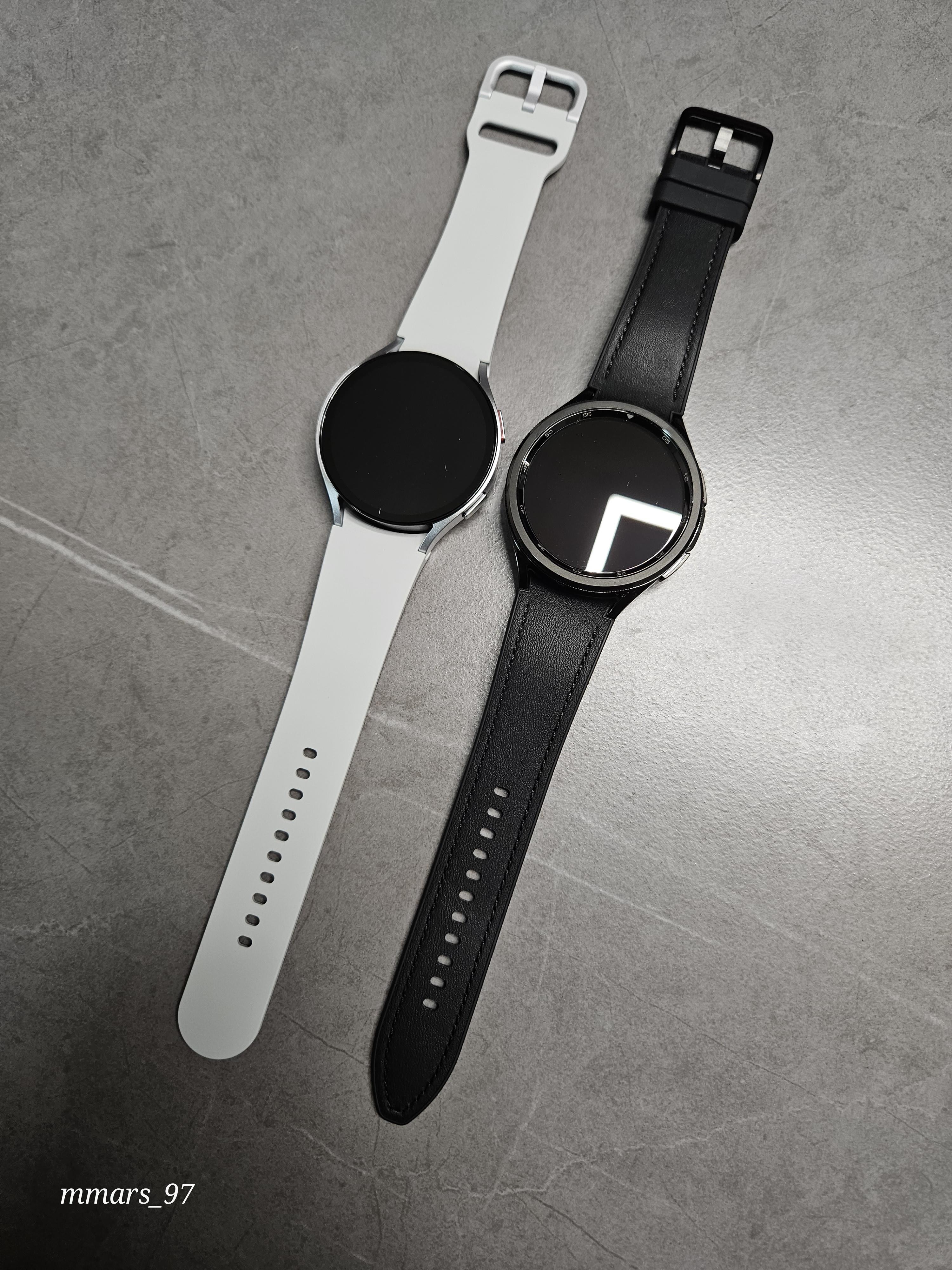 시계 모양이 네모와 동그라미라서 왠지 갤럭시 워치가 더 커 보여요