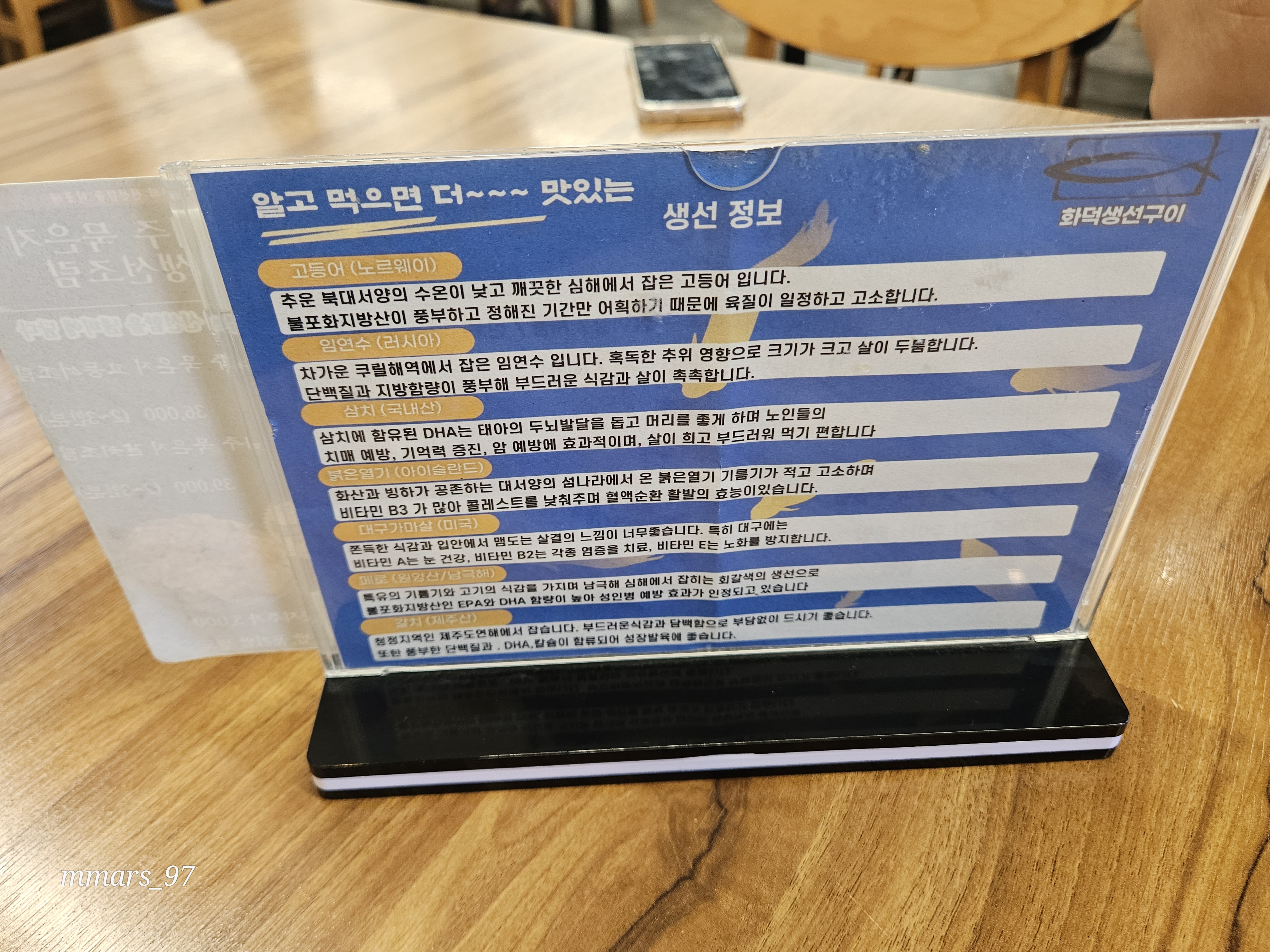 종류별 생선의 정보가 자세하게 적혀 있어요