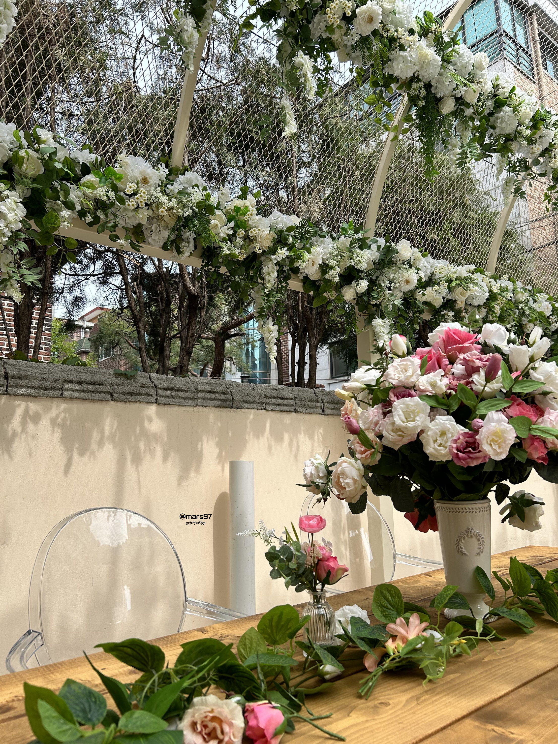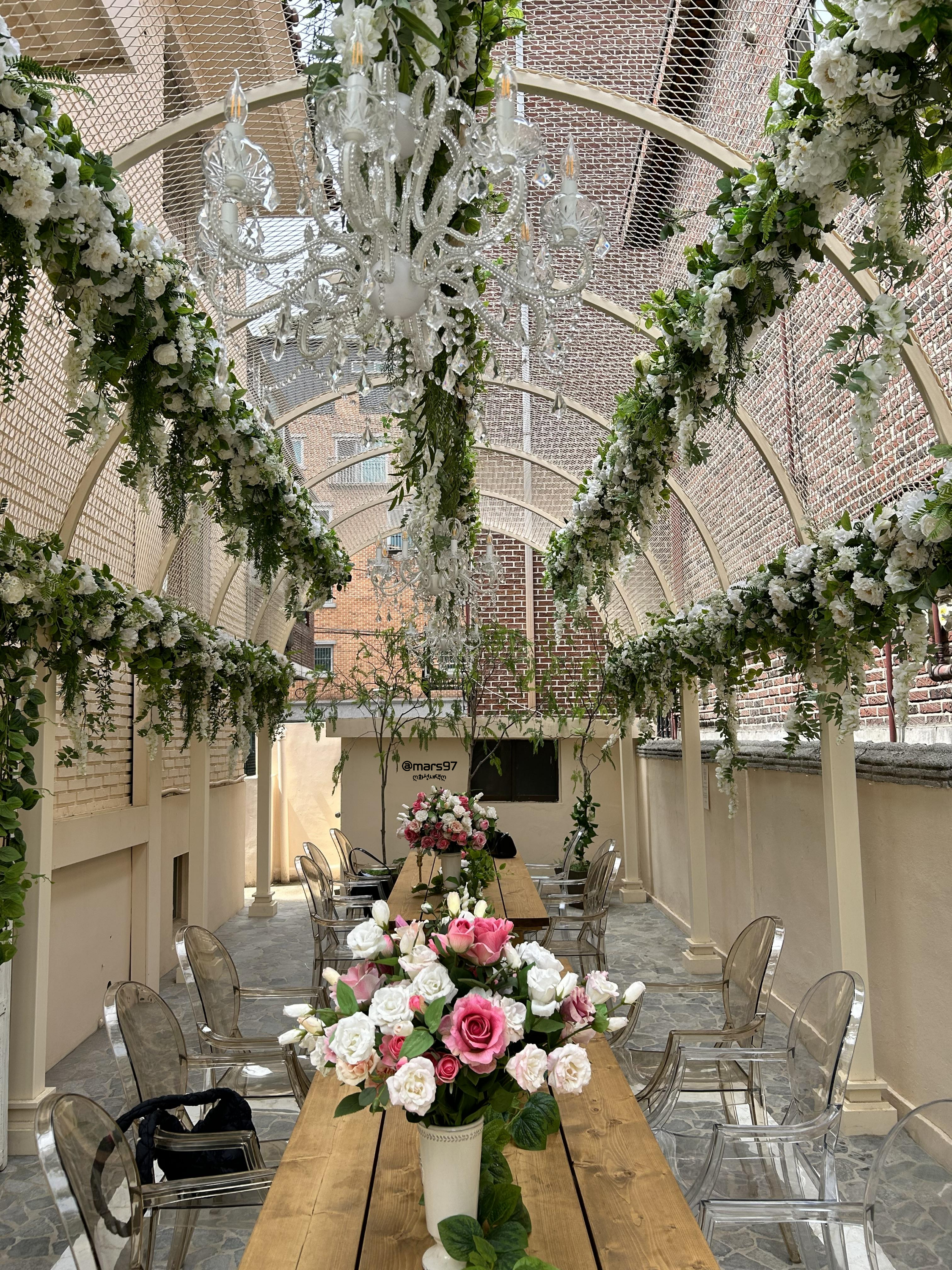 위에 천장까지도 꽃으로 예쁘게 장식되어 있어요