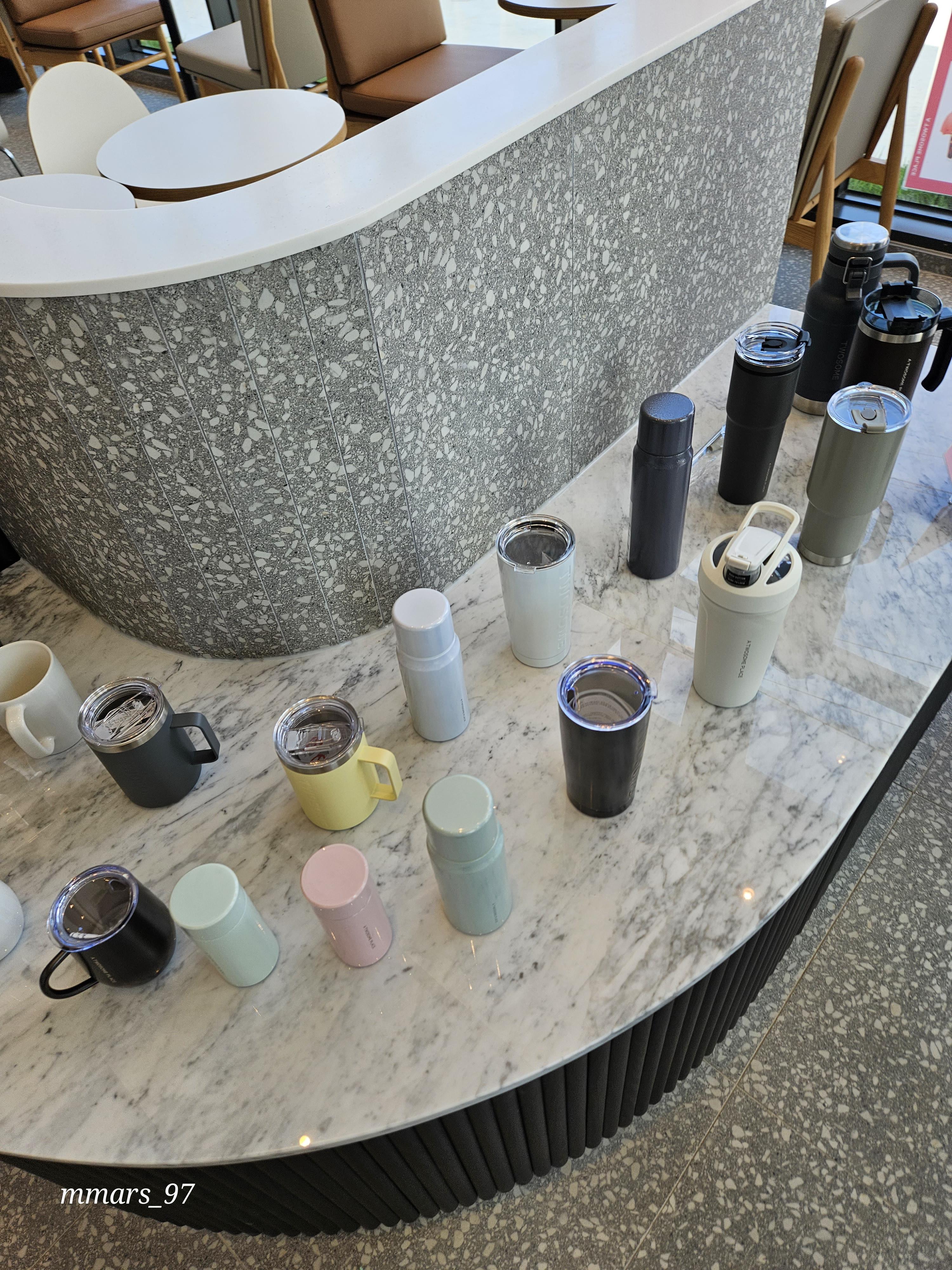 뒤쪽에는 구매욕 뿜뿜 오는 텀블러들이 전시되어 있어요