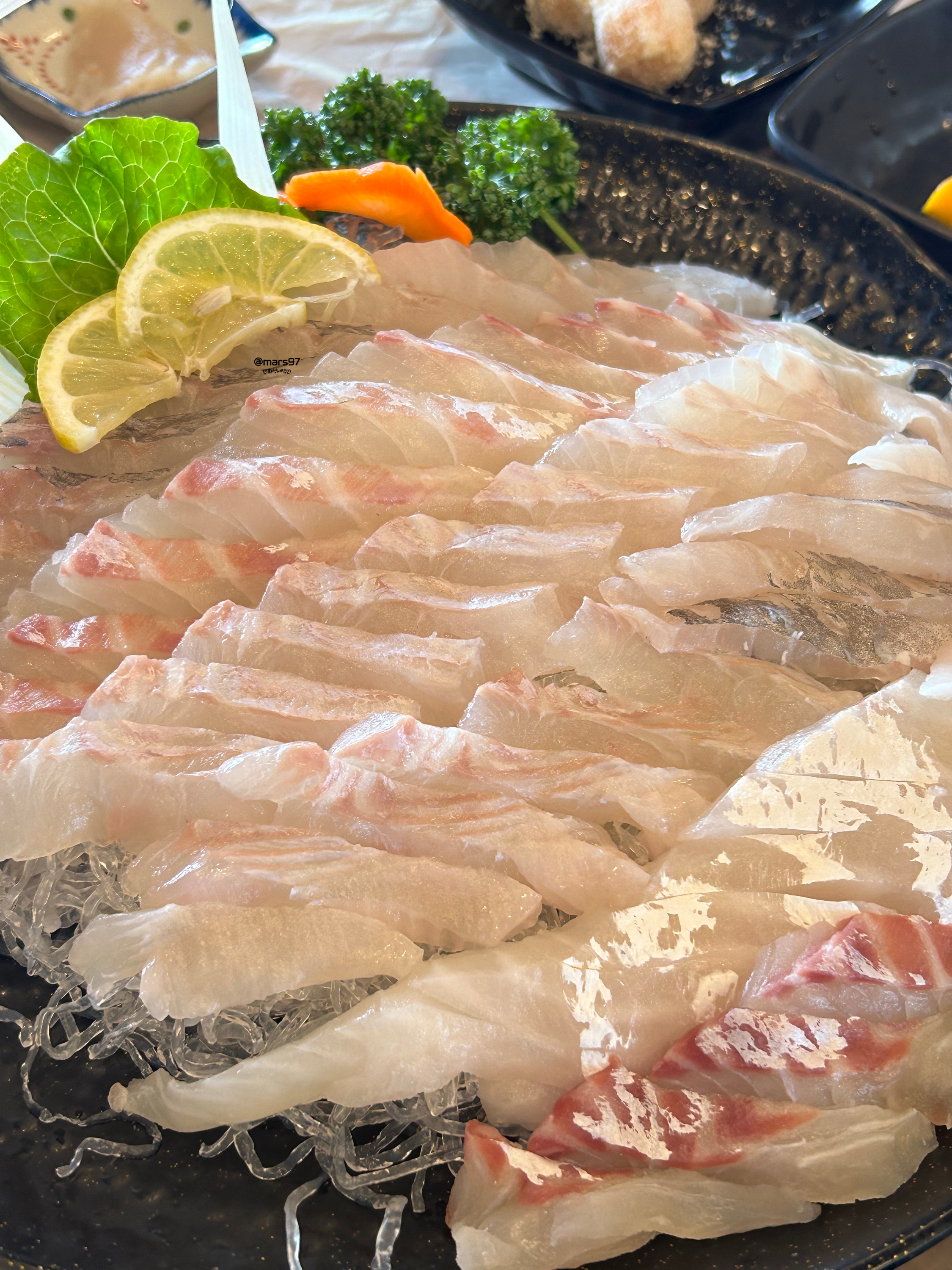 회도 푸짐하고 전복도 있고, 멍게도 들어가 있어요