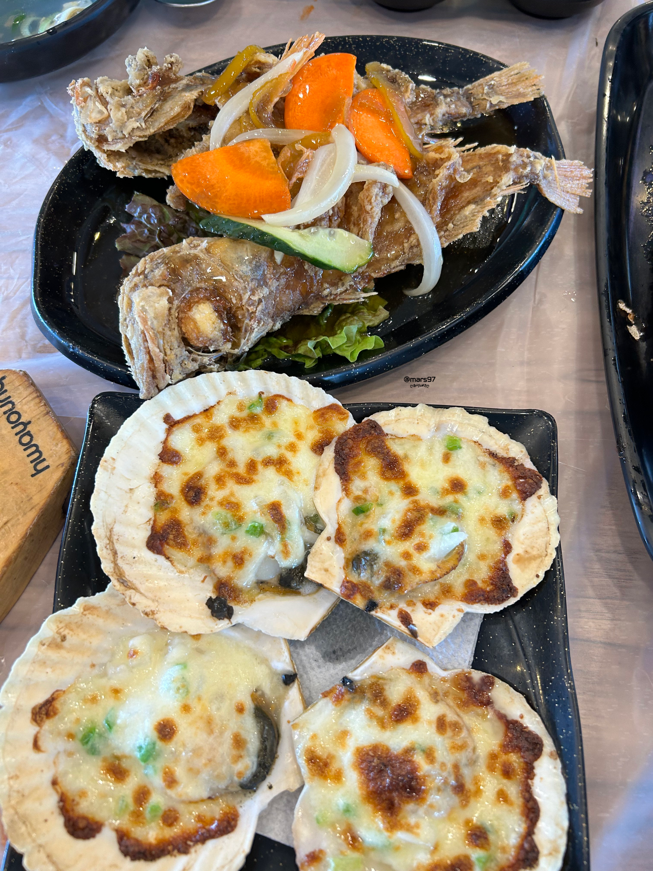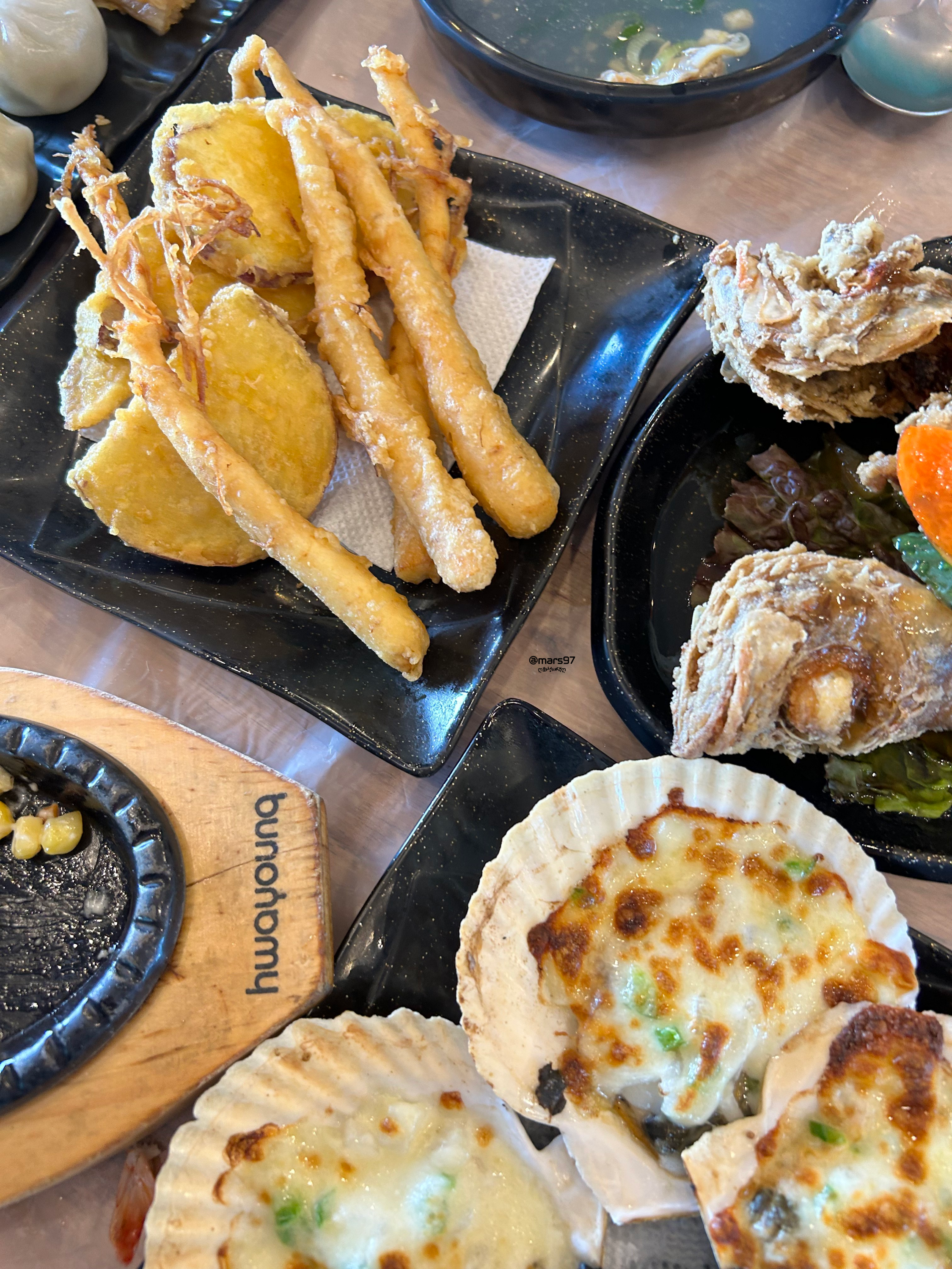 치즈 가리비 구이와 우럭 탕수육, 고구마와 삼 튀김, 소라와 꼬막찜까지~
