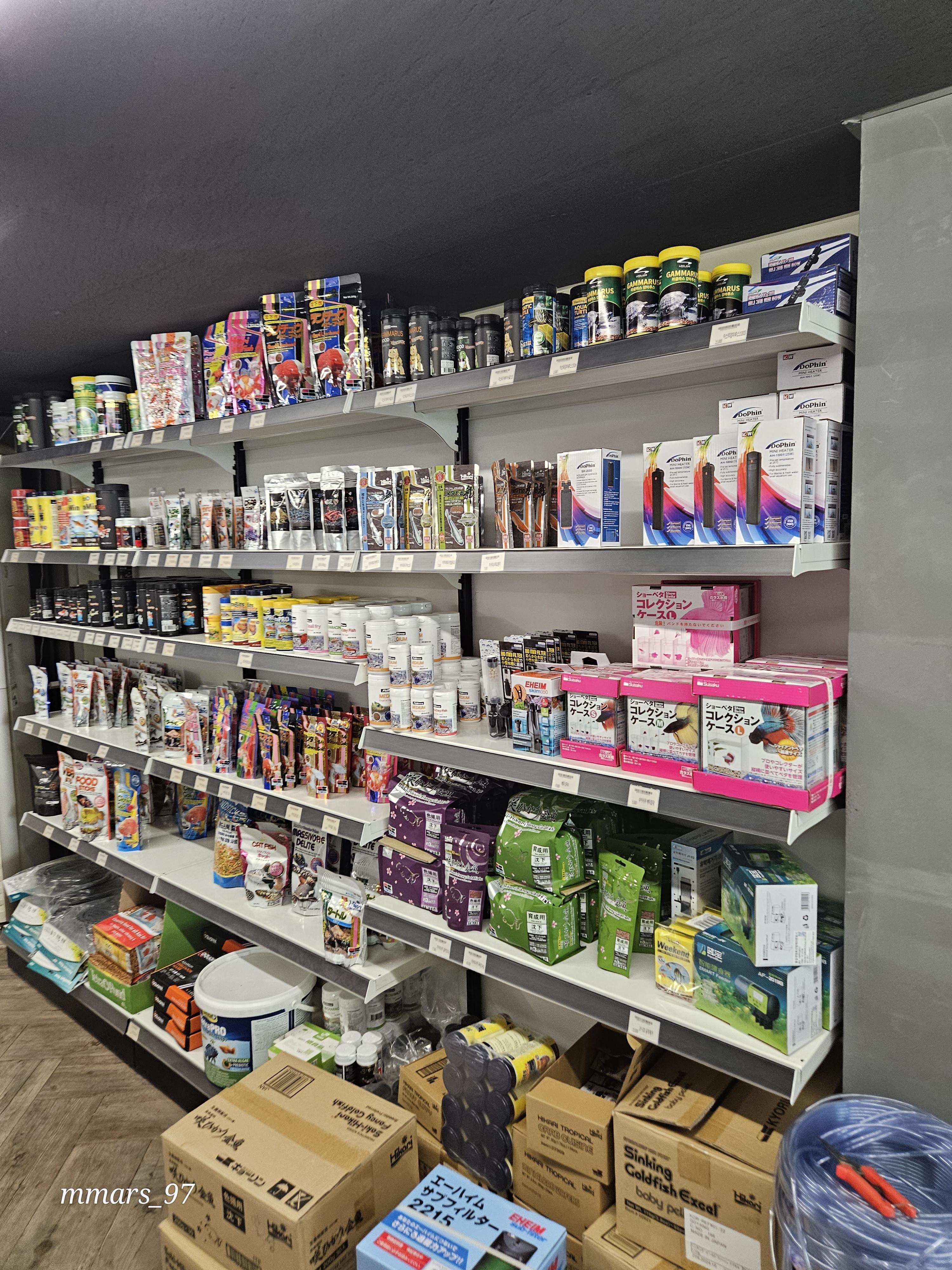어항부터 다양한 용품들이 진열되어 있어요