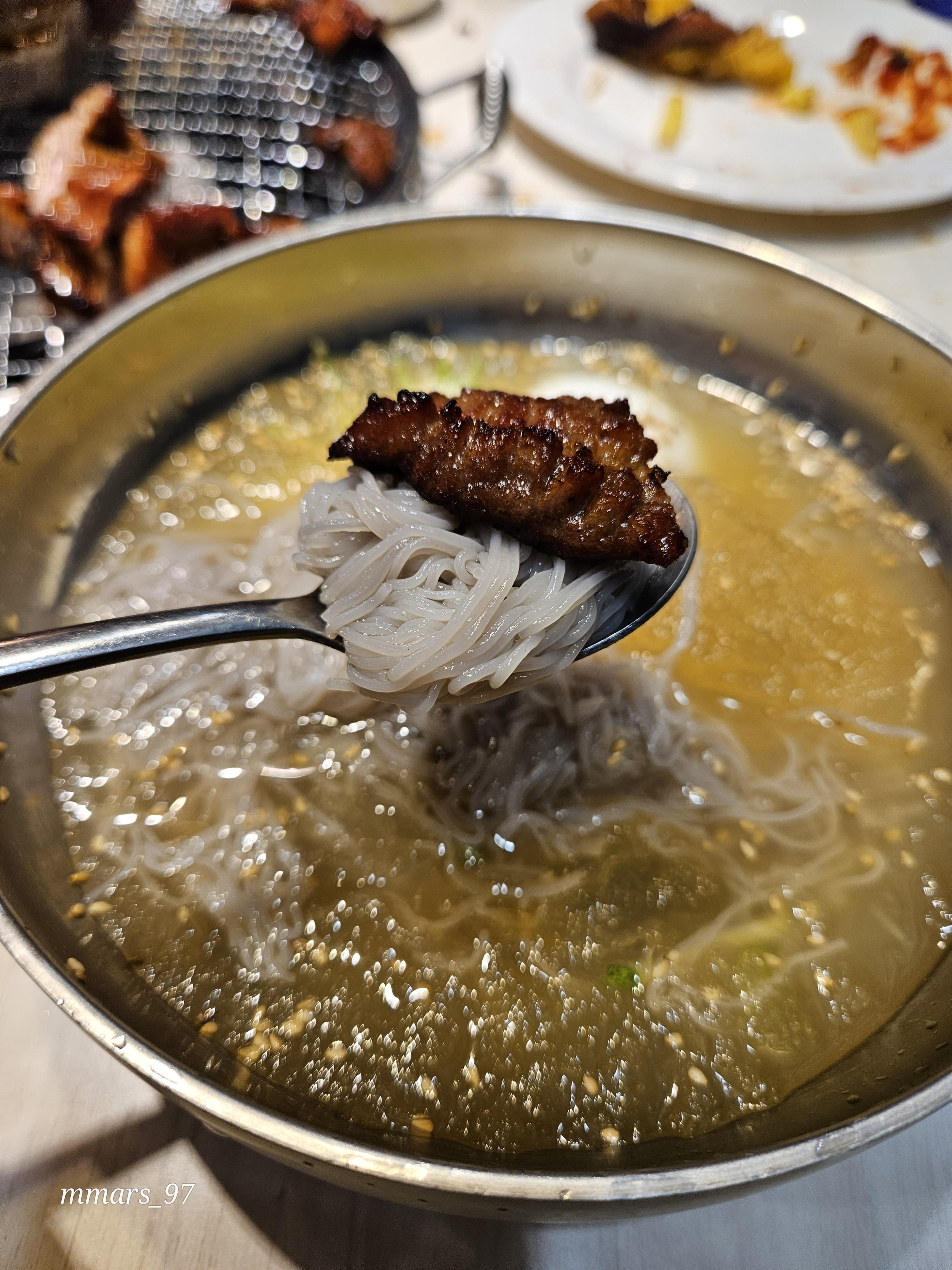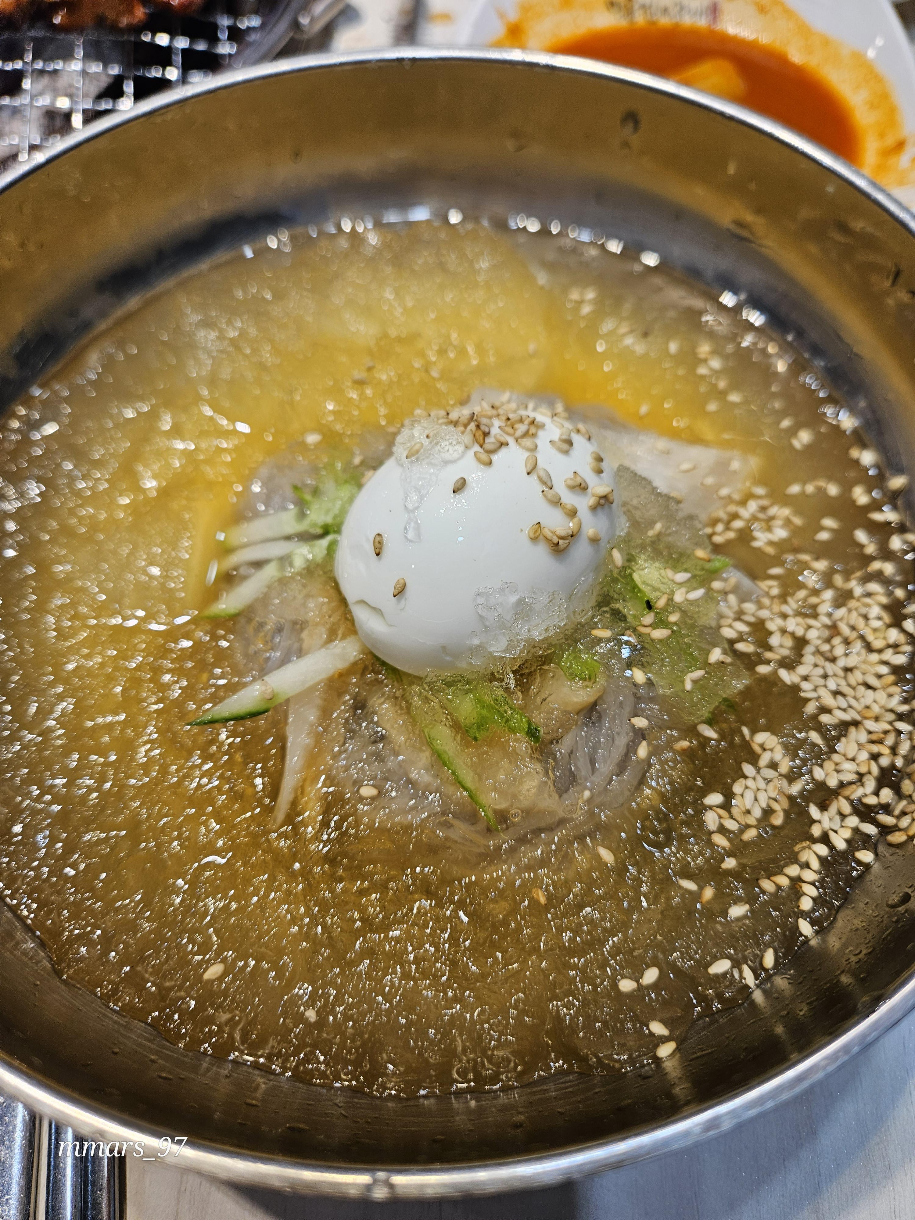 살얼음 동동 뜬 물냉면에 갈비 올려먹으니