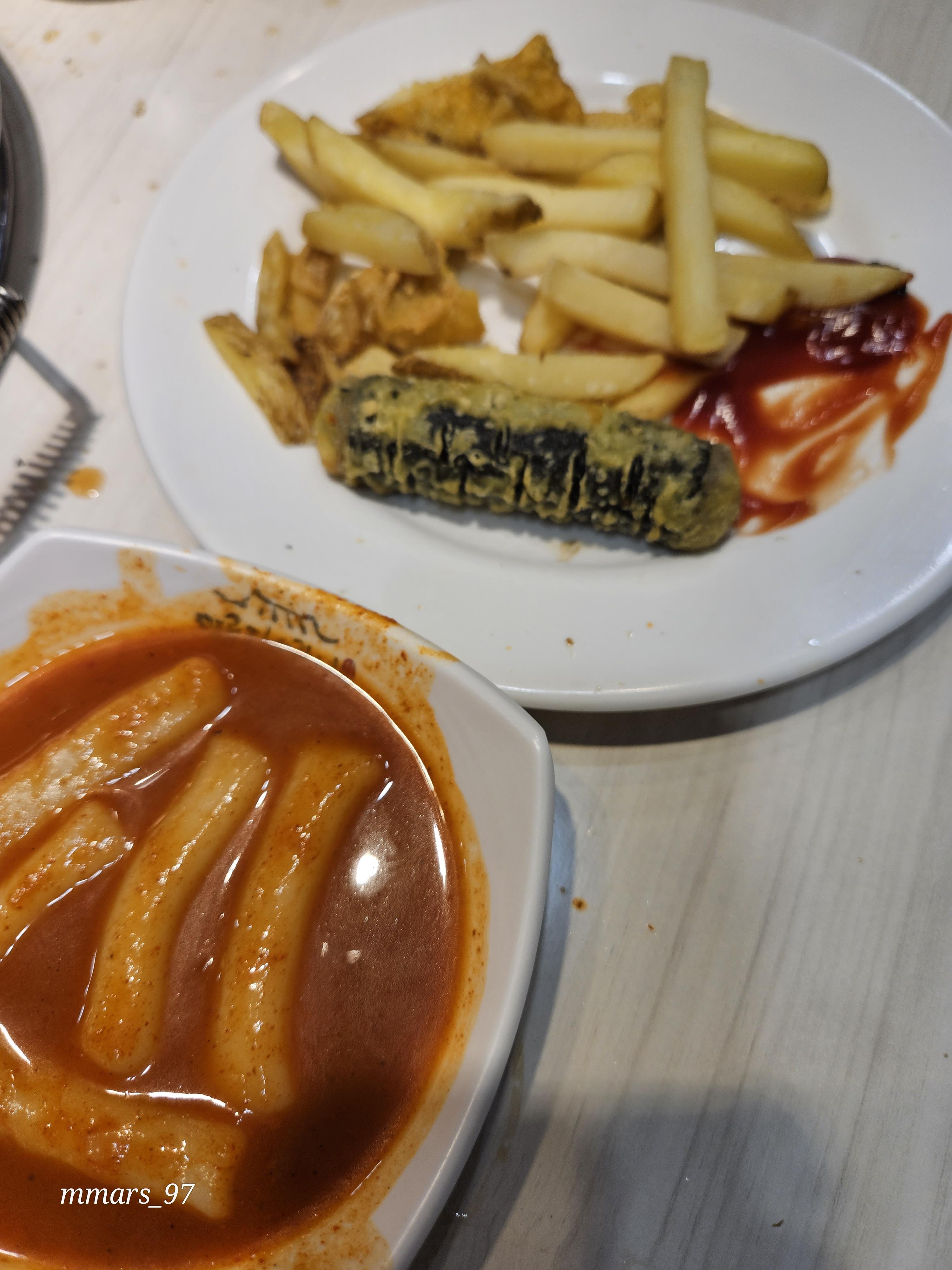 튀김 조금과 떡볶이 조금 담아 왔어요