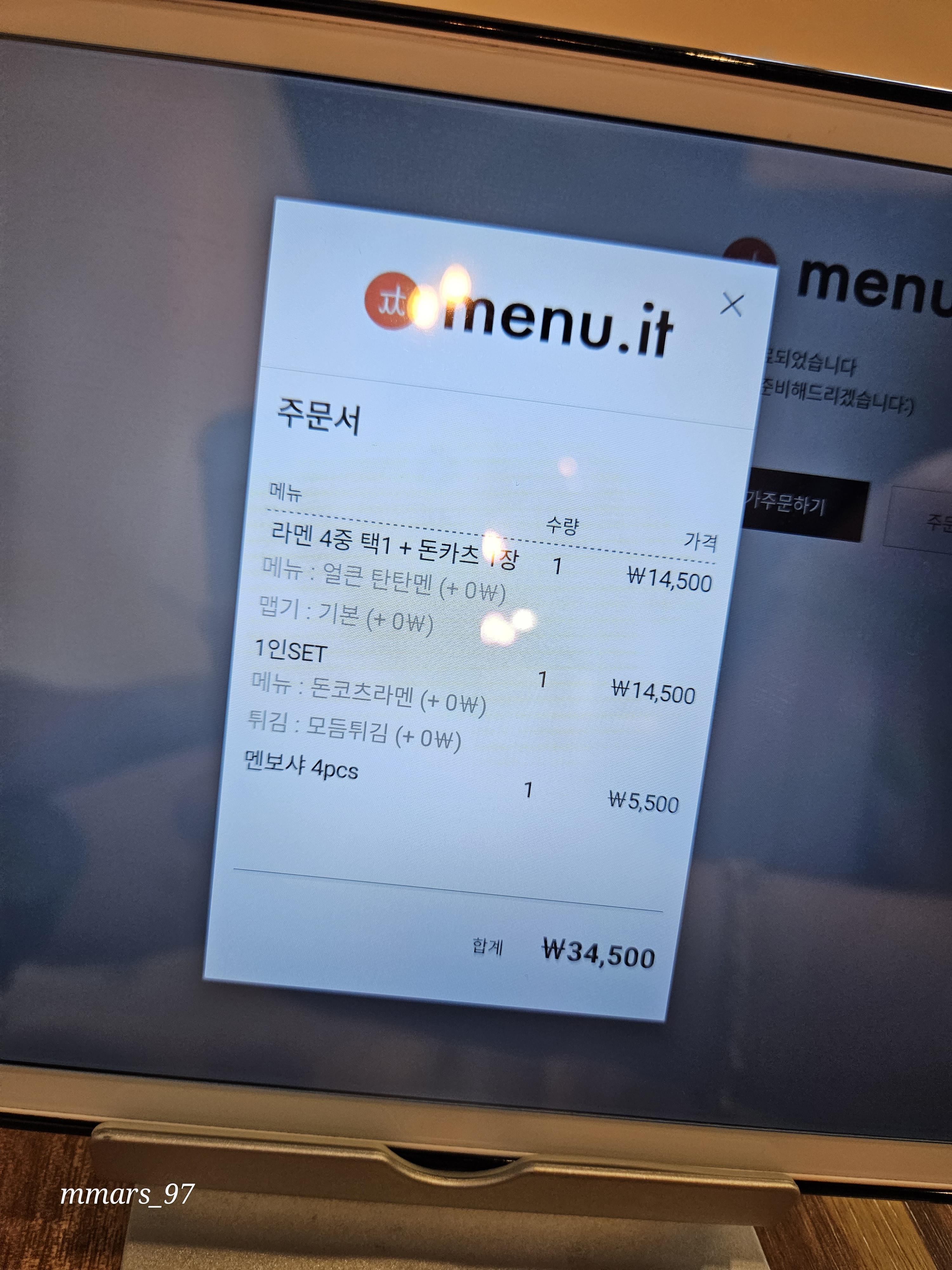 라멘 선택은 얼큰 탄탄멘으로 선택했어요
