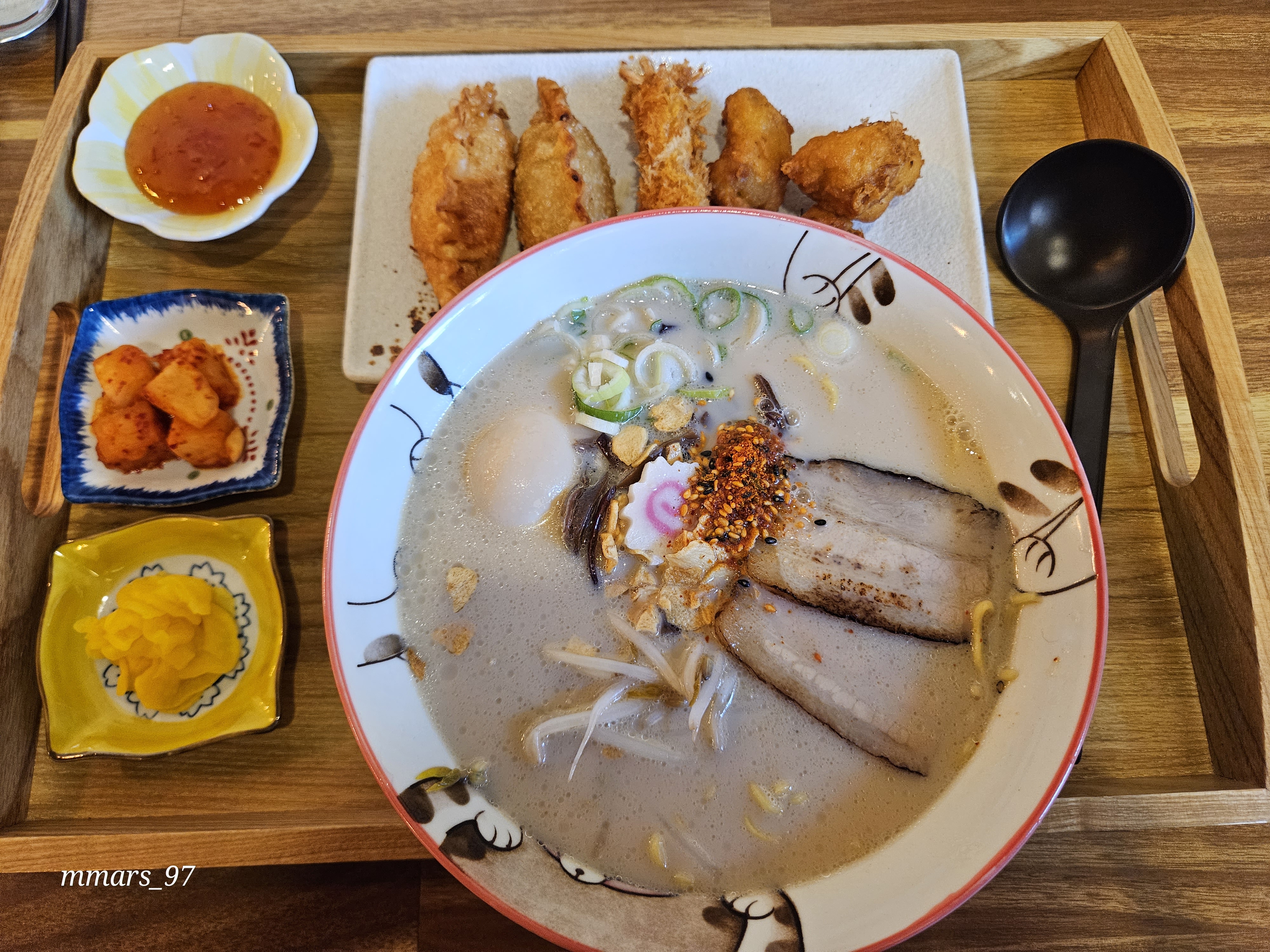 먼저 저가 주문한 1인세트 돈코츠 라멘과 모둠튀김이에요