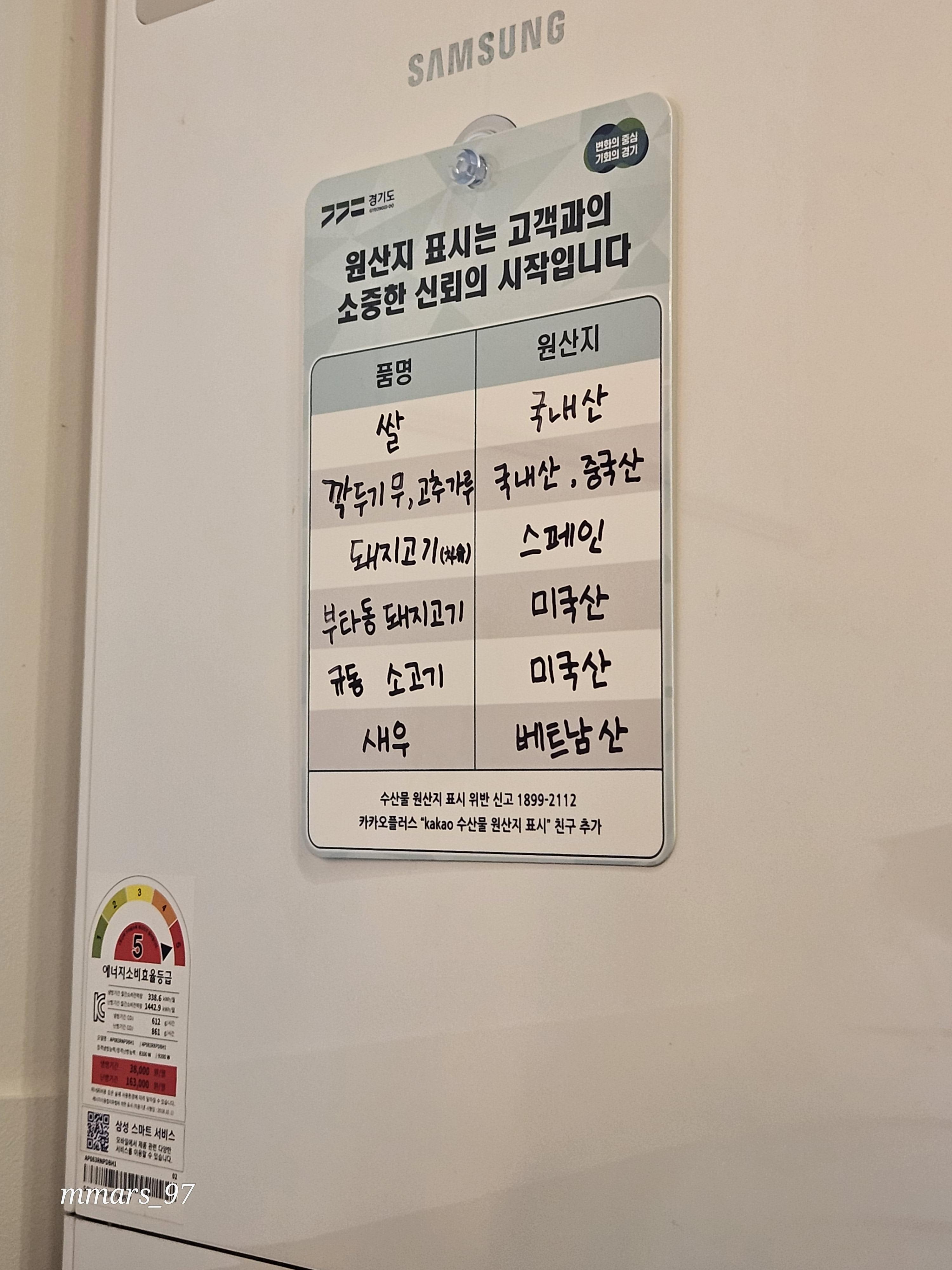 한쪽 벽면에는 원산지 표시판이 붙어 있어요