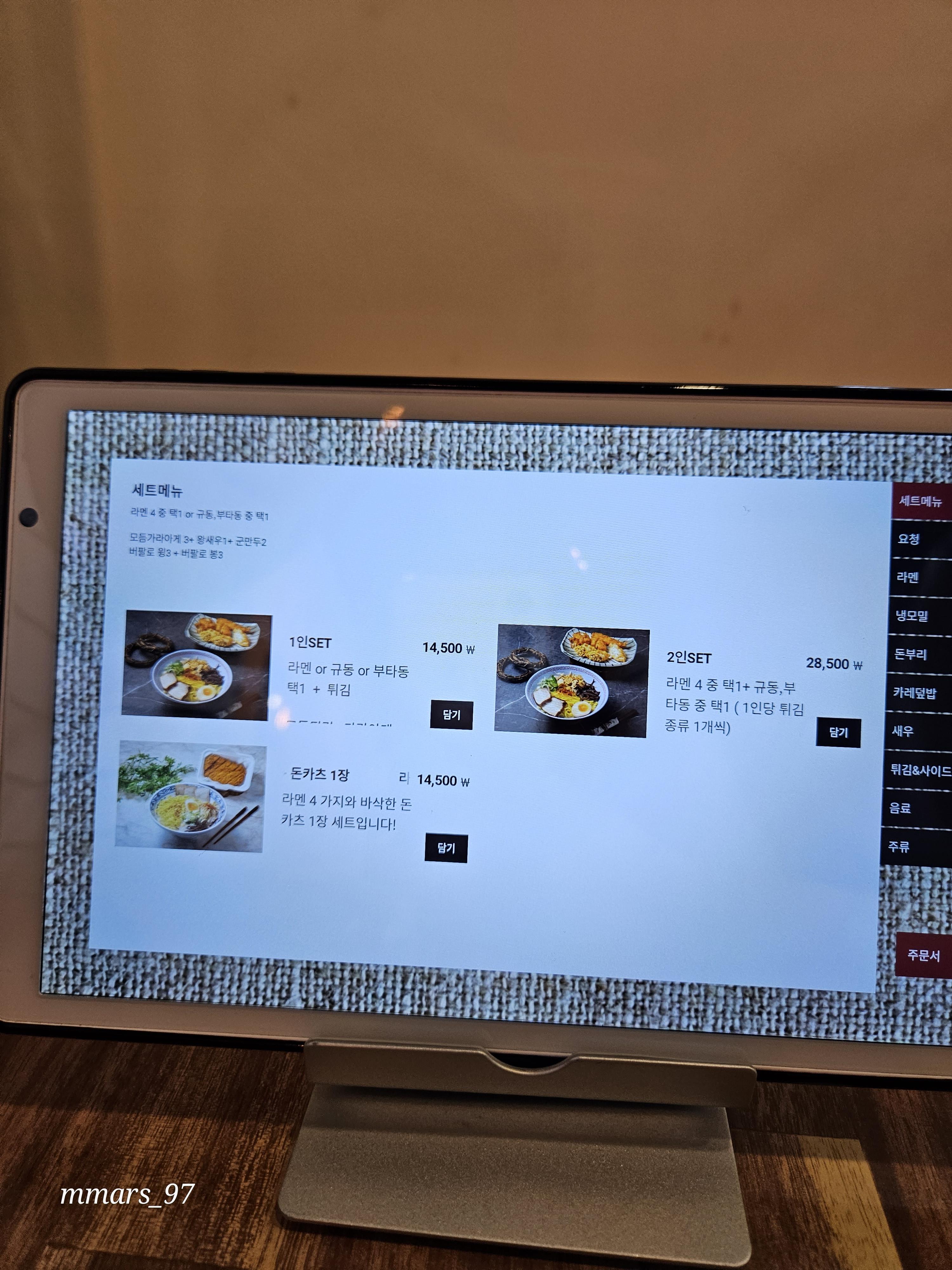 라멘 4종류 중 선택 1 + 돈까스 = 14,500원